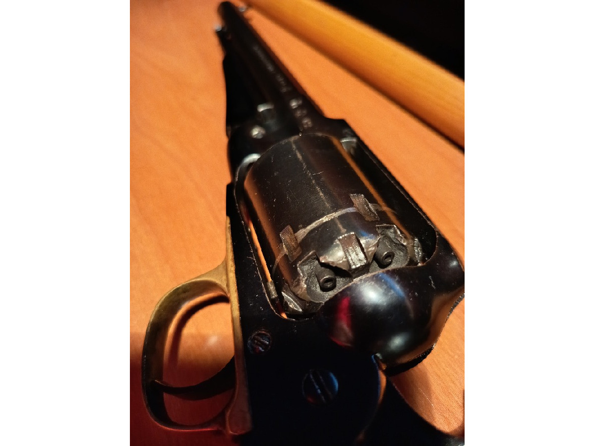 Revolver de avancarga Santa Barbara calibre 44, cañón de 20 cm. Réplica del mítico Remington New Model de 1858. En buen estado.