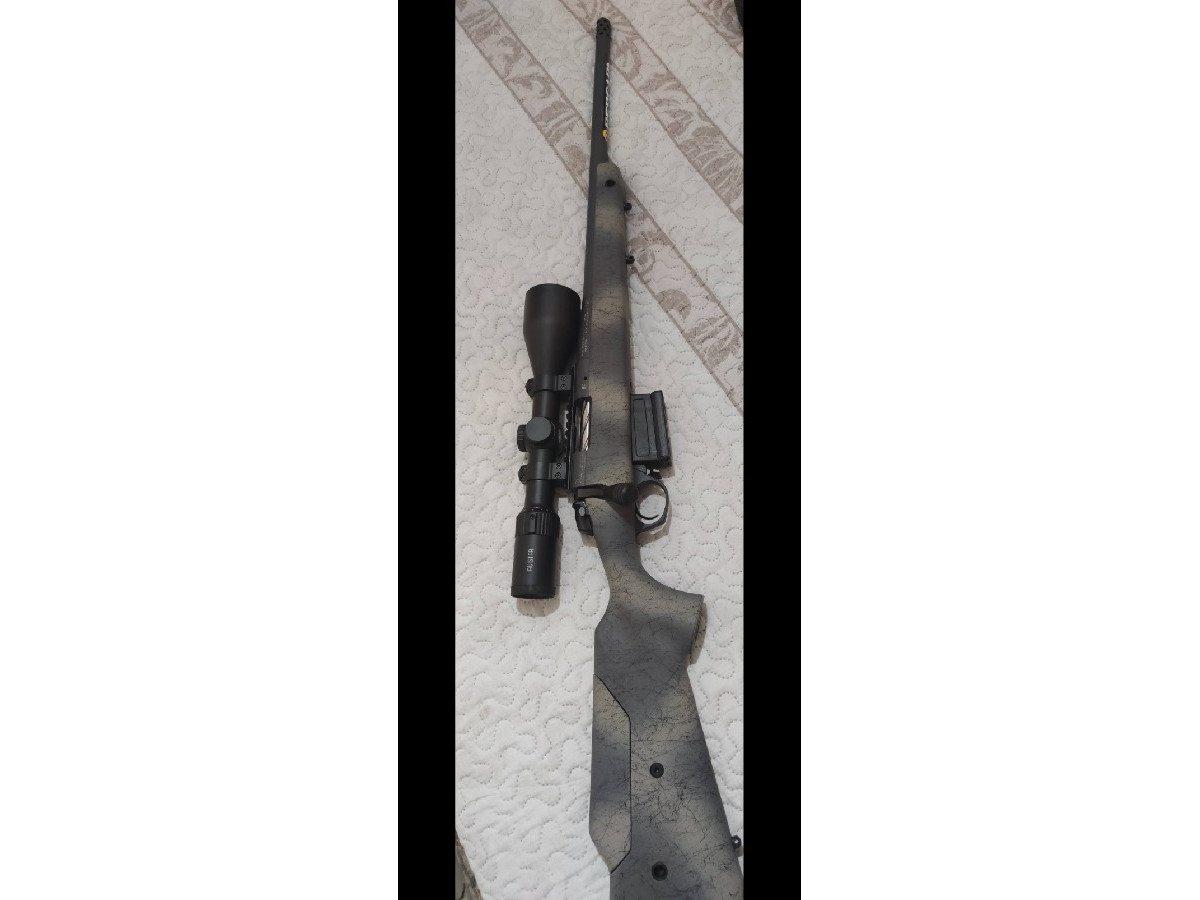 Rifle Bergara calibre 308. con solo 14 disparos. precisión sub-moa. cañón flotante pavonado en cerakote, freno de boca, cargador aics con capacidad de 5 cartuchos, cierre fluteado. visor avistar 3-12x56 con retícula iluminada y monturas warne fijas. Lo vendo por exceso de armas.
