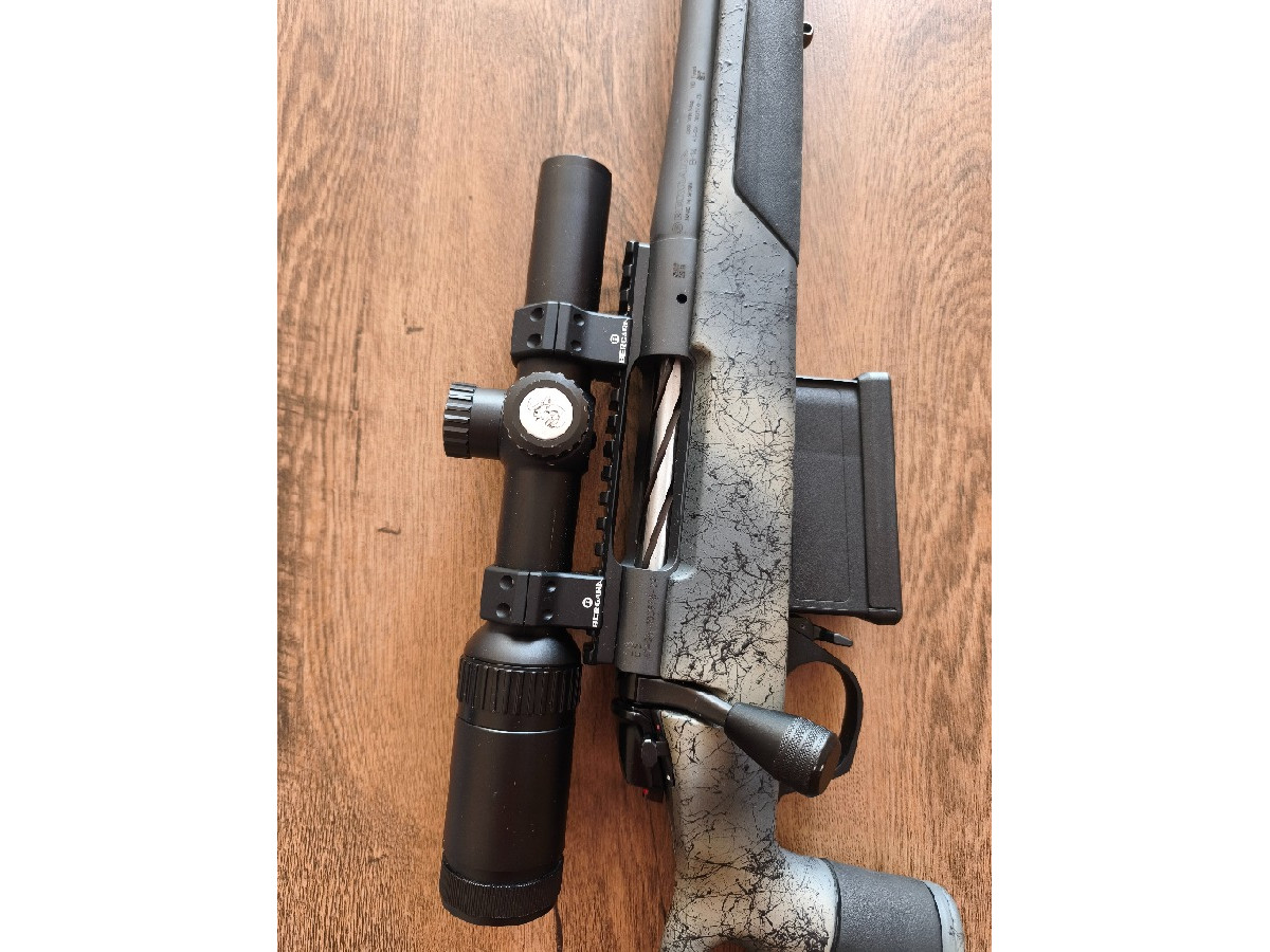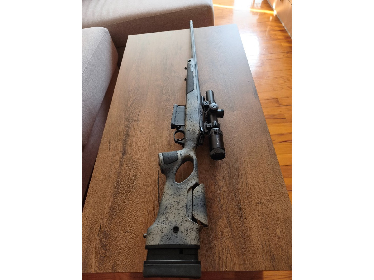 Rifle en estado nuevo. Ni 20 disparos, con bases y anillas Bergara y visor de batida con 6 aumentos. Sistema de cerrojo. Muy buena precisión. Cantonera y culata regulable. Cañón 61 cm con freno de boca omnidireccional. Calibre 300 Win Mag.