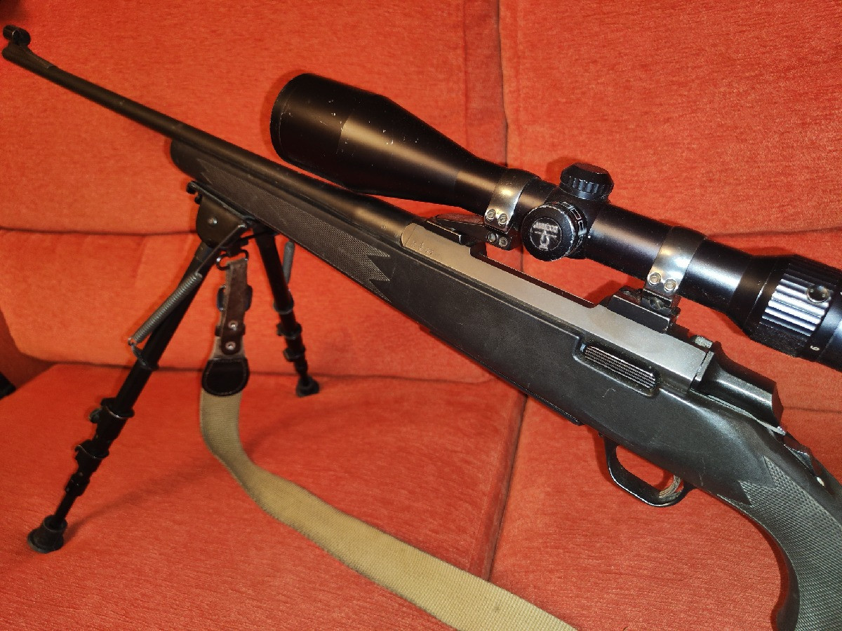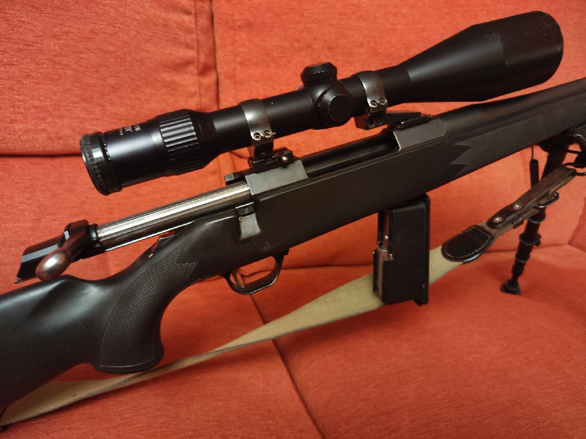 Rifle de cerrojo Browning A-bolt calibre 270 Win. De cargador extraíble. En muy buenas condiciones. Con culata de composite negra, y otra culata de madera en caja larga hasta la boca del cañón. Muy preciso. Con anillas y bases Apel incluidas de 30. Zona Toledo.