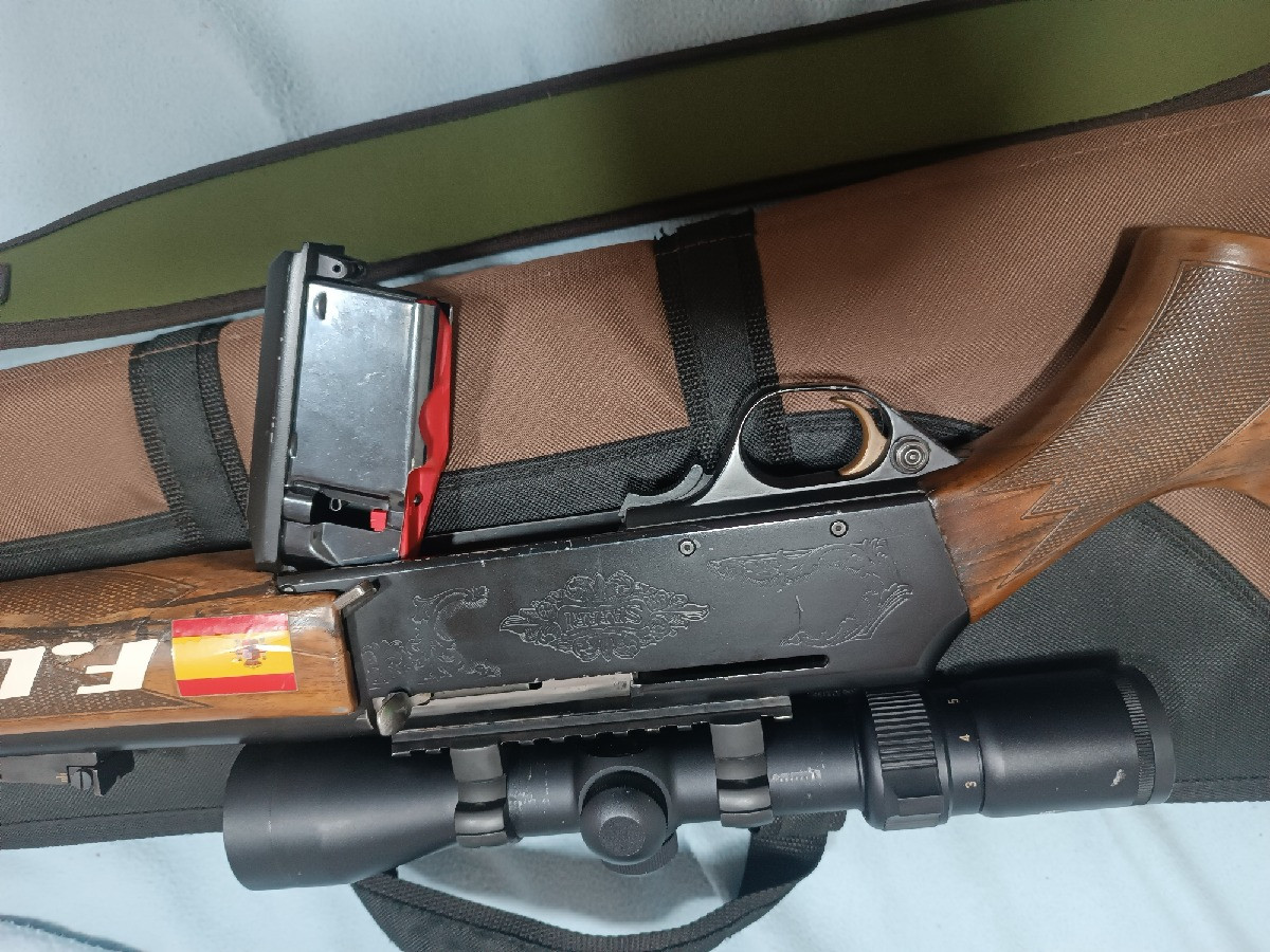 Vendo rifle Browning BAR 2 Safari calibre 300 WM con visor Optalens 1,5-6x42 montado sobre carril Picatinny puesto a tiro perfecto, punto de mira en fibra rojo. Entrego también con el punto rojo Bushnell para poder montar en el carril si se desea. El rifle se encuentra en muy buenas condiciones. El guardamanos una vez dio un golpe y se rajó y está reparado, que no falla. Se puede entregar con otro en perfectas condiciones aunque incrementaría su precio en 100€.