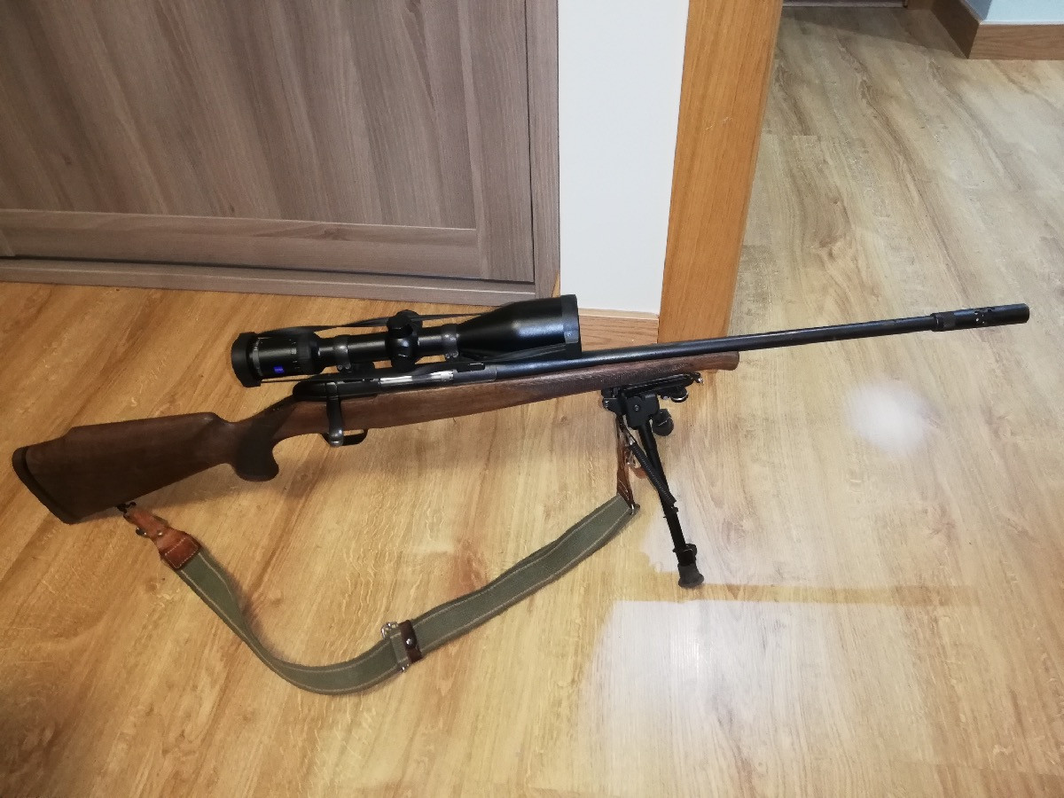 Se vende rifle de cerrojo Browning de madera, modelo European, calibre 30-06. El rifle dispone de freno de boca y pelo, se entrega con el bípode de la foto y bases Appel.