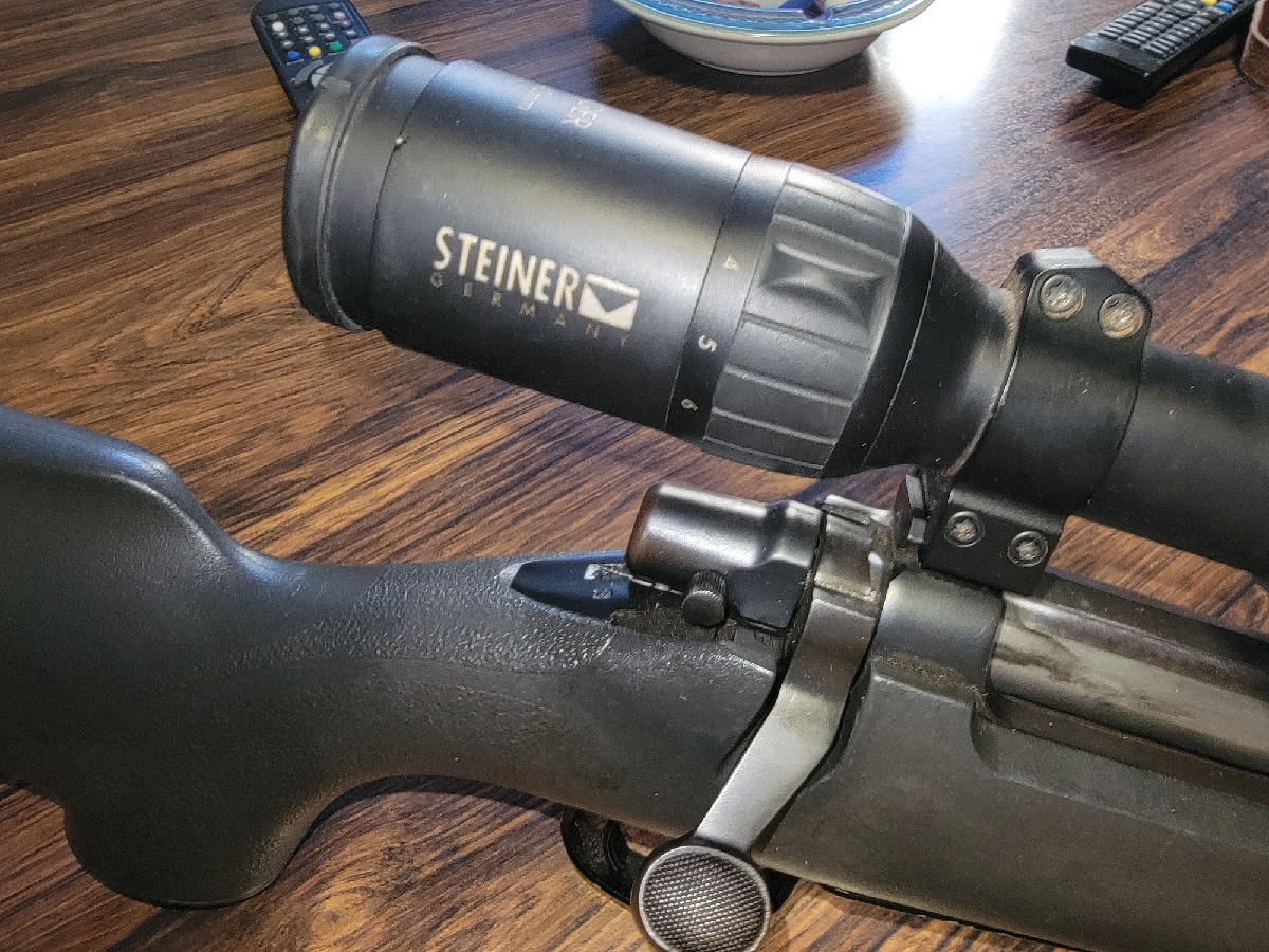 Cerrojo Remington Seven modelo Youth sintético con monturas Warne y visor Steiner Ranger de 2-8 x 42 con retÃcula iluminada. Usado pero en buen estado.