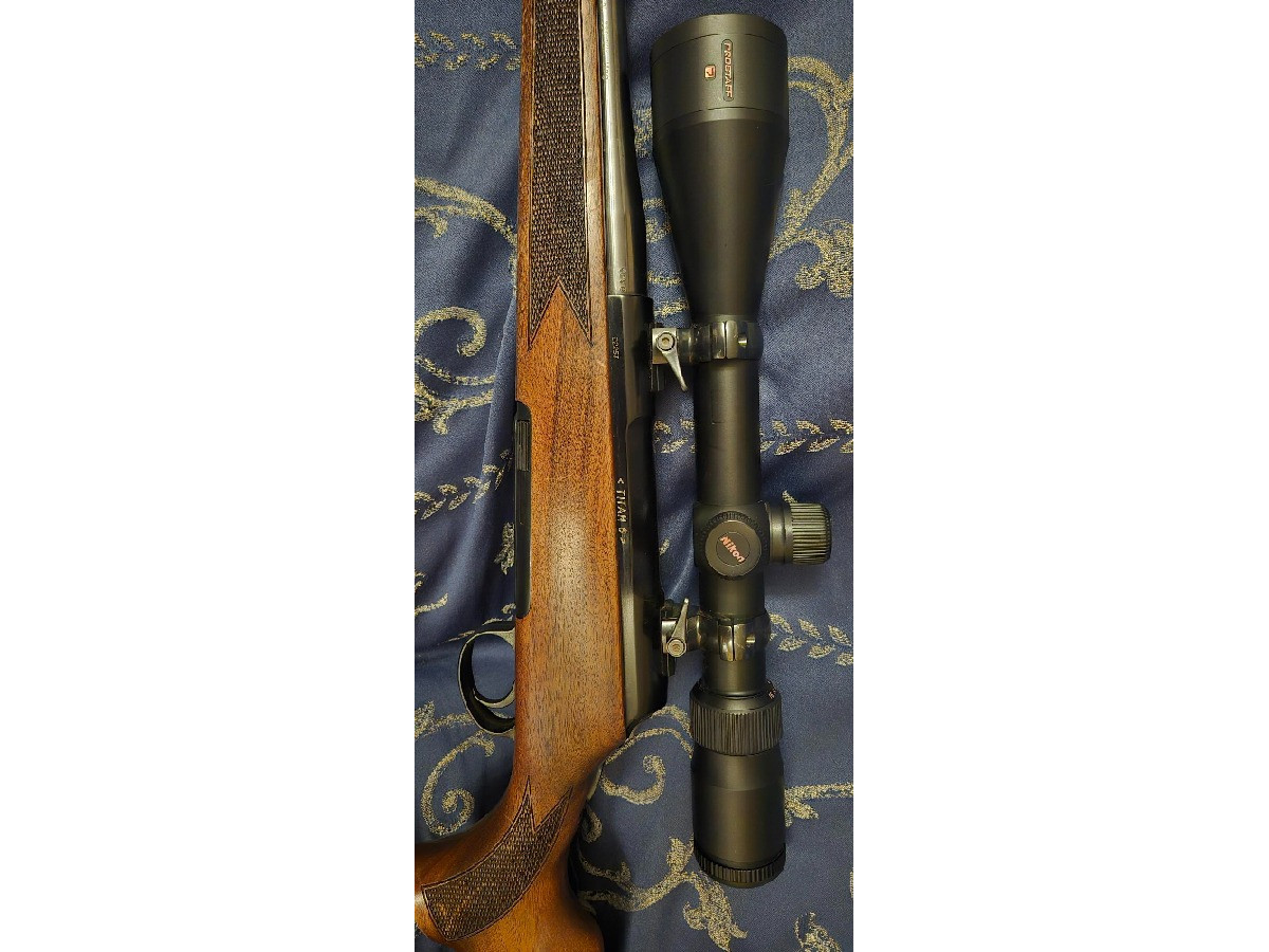 Se vende rifle cerrojo Titan 6 cal. 338 WM (seminuevo) con monturas y visor Nikon Prostaff 4 x 16 x 56 con paralaje. (Prácticamente nuevo), se regala funda acolchada, correa, cargador de 5. Lo vendo porque no me acostumbro a cerrojo, tengo 2 rifles semiautomáticos. Soy de Madrid, mejor ver.
