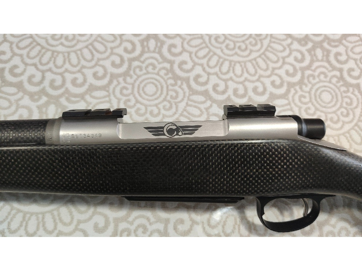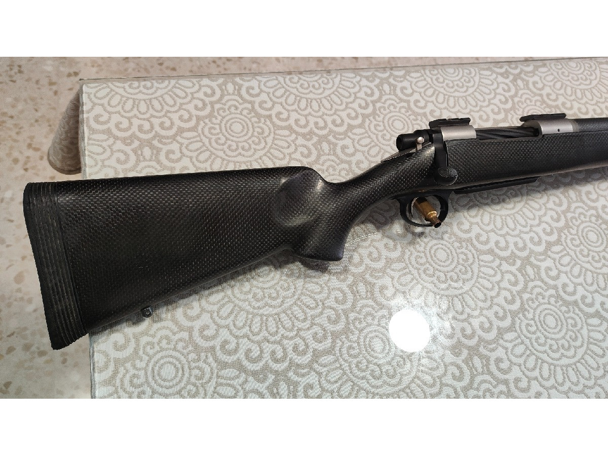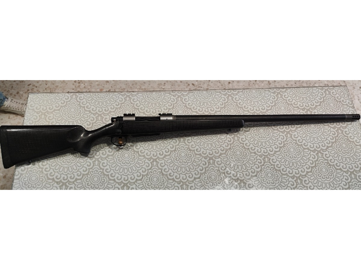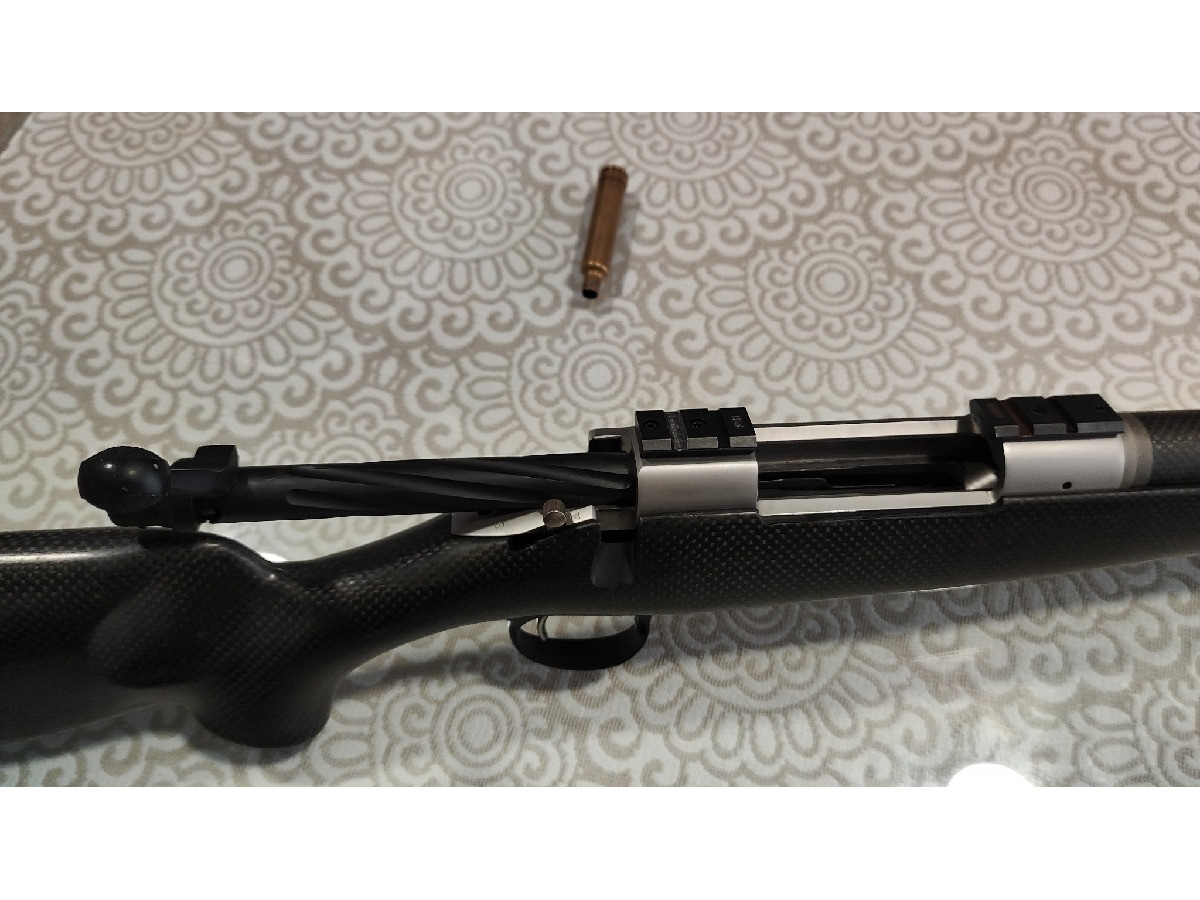 Rifle de cerrojo Christensen Arms Carbon Custom en calibre 30-378 WBY y cañón de 61 cm. Tiene gatillo con pelo y bocacha cilíndrica original. El rifle es íntegramente de fibra de carbono, culata y cañón. Tiene bases warne y cargador extraíble. Perfecto para rececho y caza de larga distancia. Muy preciso y ligero, tiene poco retroceso.