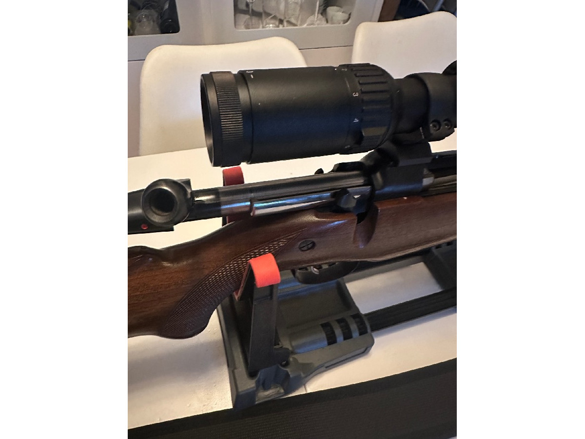 Es CZ 550 con alzas de 100m/200m/300m. Visor y correa incluida. Visor con retícula iluminada marca Dall’s Sheep 2-12x50. Muy pocos tiros en perfecto estado. Sistema Mauser 98 tanto cerrojo como alimentación. Cerrojo, 5 balas. Gatillo de pelo. Alta calidad. 64cm de cañón. Rifle poderoso de alta calidad. 1200€