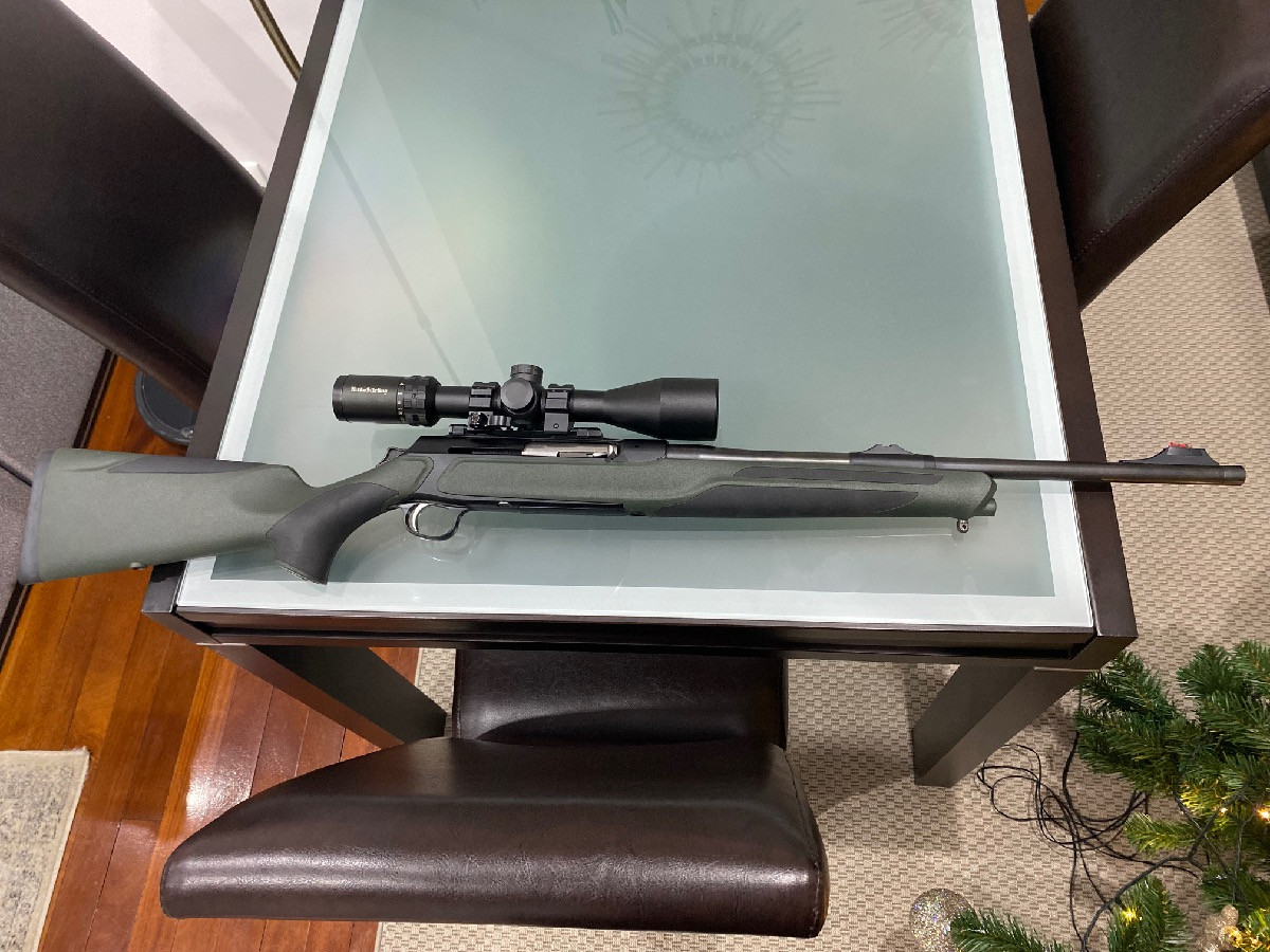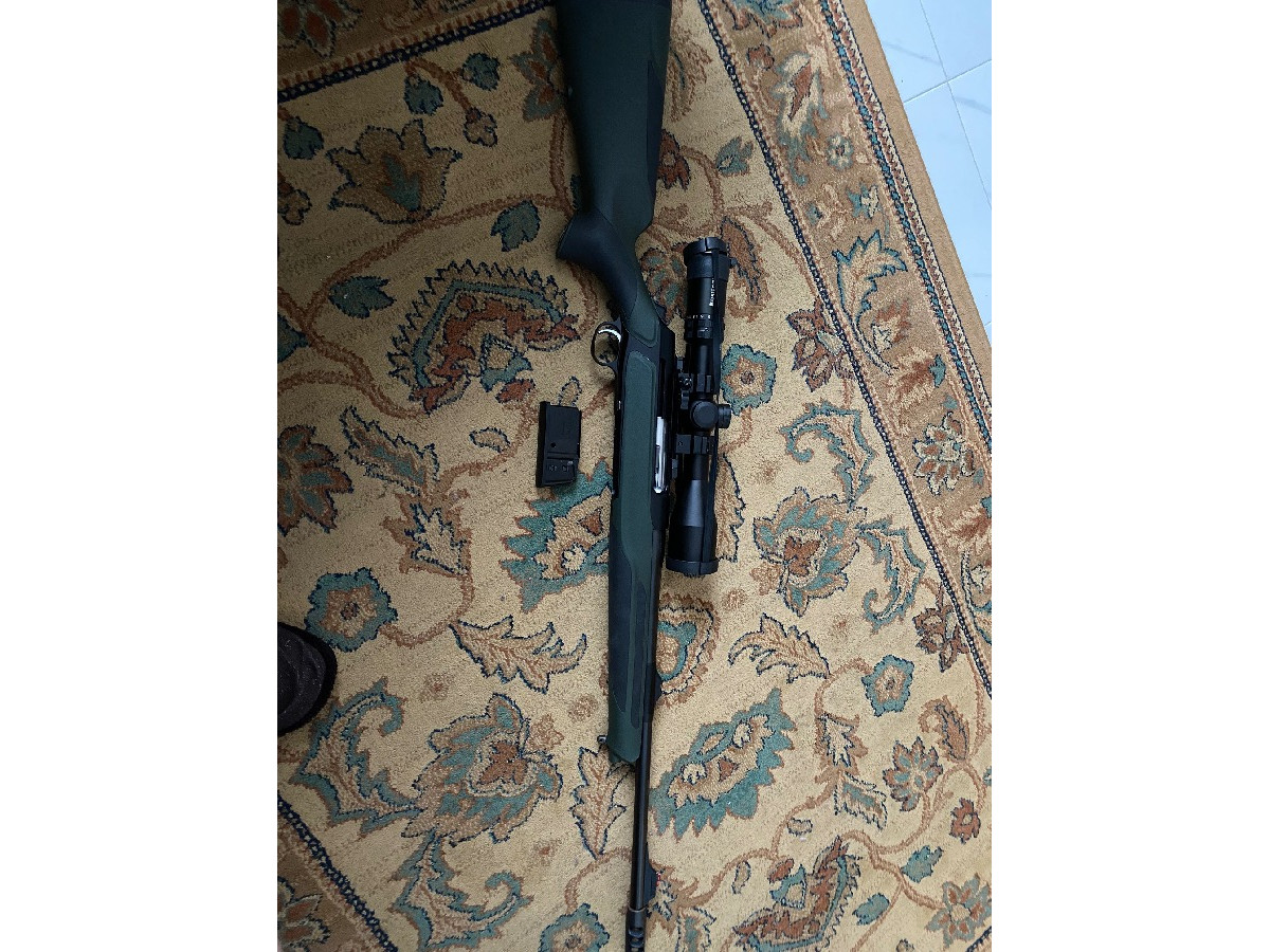 Rifle de caza Sauer S303 en calibre 338 WM con freno de boca. El rifle está nuevo, apenas tiró 3 cajas de balas. Anillas desmontables, porta-correas y carril Sauer.