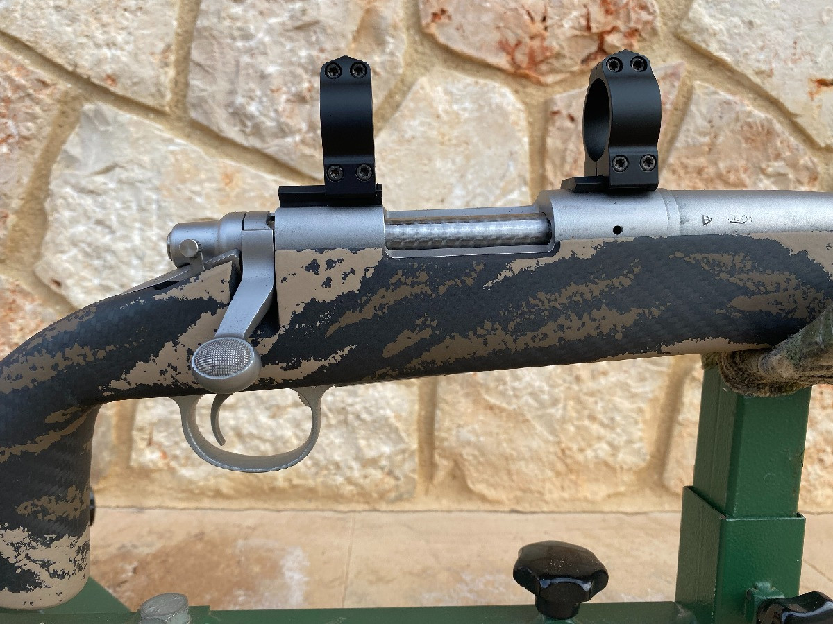 Remington Custom 308 Varmint. Culata de fibra de carbono AG Composite Stocks (a estrenar). Gatillo Jewell 1 libra, bases Warne. El rifle tiene 152 disparos. Está prácticamente nuevo. Agrupación excepcional (adjunto diana con 5 disparos).