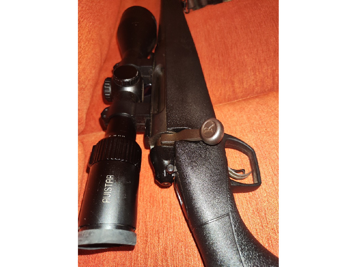 Rifle de cerrojo Remington mod. 786 en calibre 22-250 Rem. Con montura fija y visor Avistar 3-12x56. Con cargador extraíble. Puesto a tiro. Especial para control de alimañas. También para corzo. Zona Toledo.