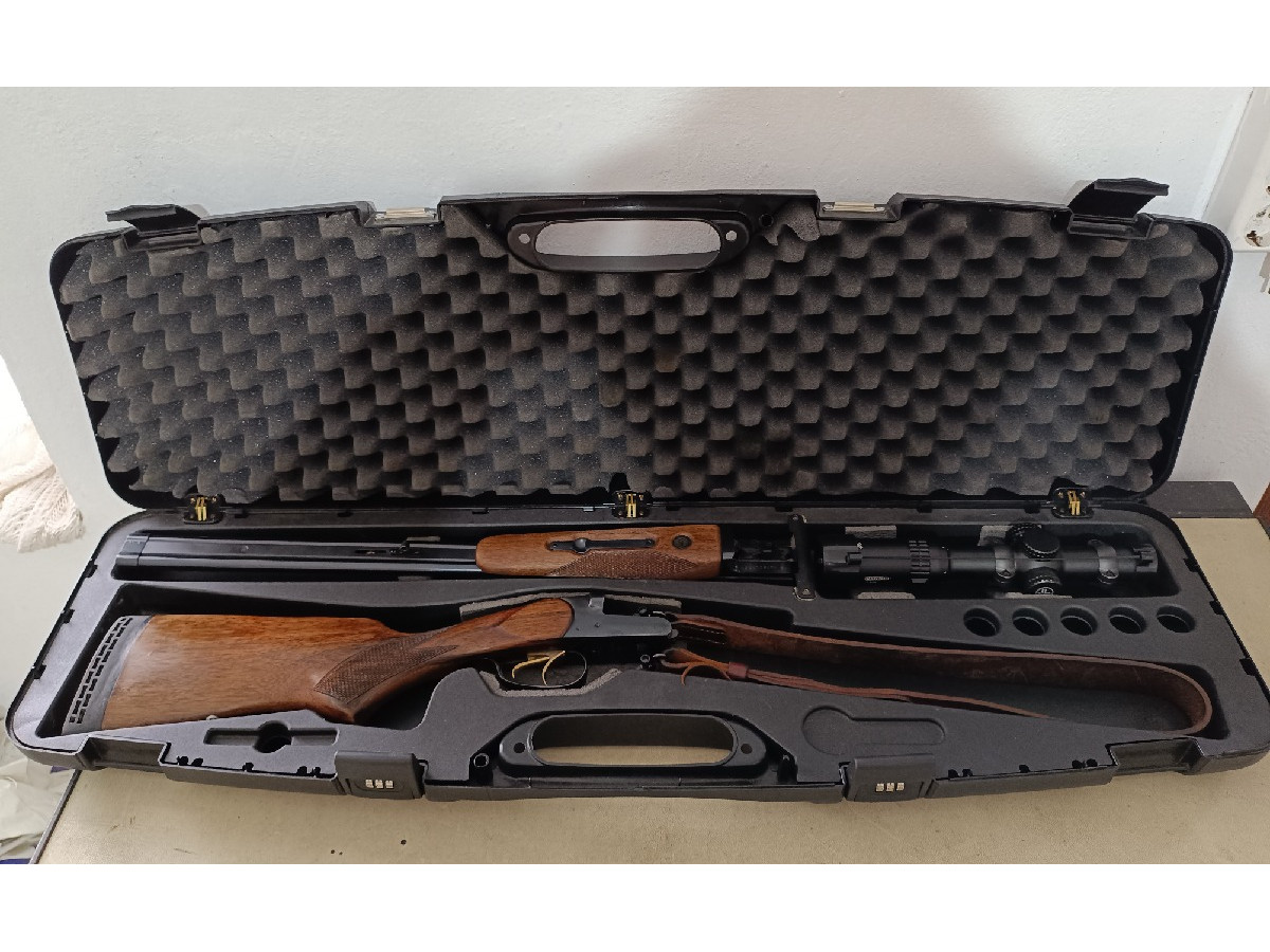 Rifle paralelo en muy buen estado, ni una gota de óxido, muy cuidado, calibre 30.06, visor Vortex 1-6x24 iluminado, bases y anillas Leupold QR, fibra óptica en alza y punto de mira, maletín rígido, correa portafusil.
