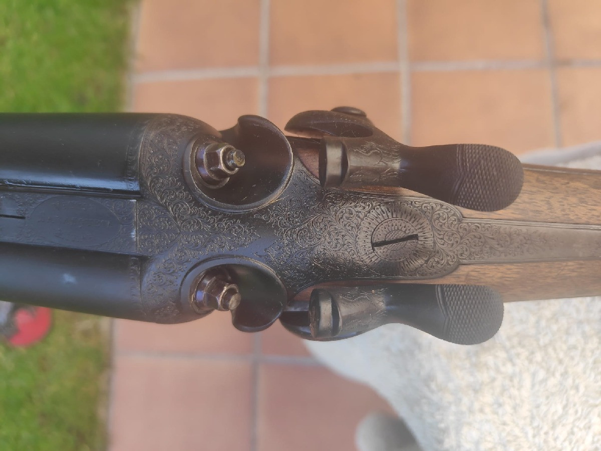 Descripción: Rifle express de E.M. Reilly para coleccionistas y aficionados a las armas. Fabricado en 1870 y en excelente estado. Es una joya. Calibre 10.75 x 56R.