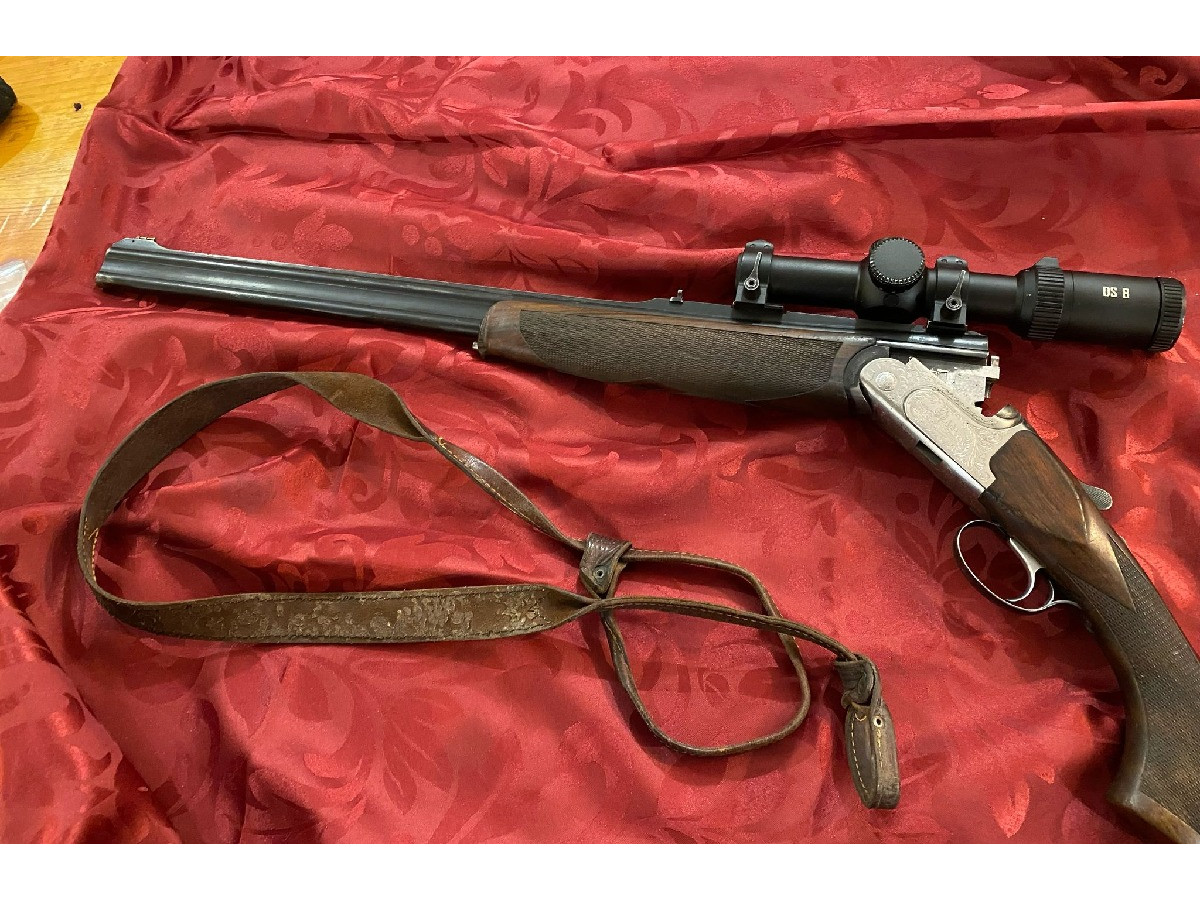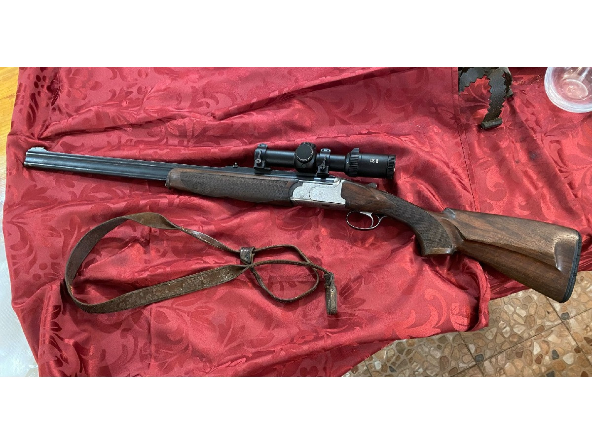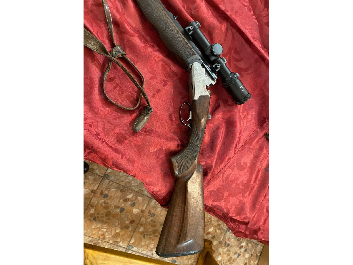 Rifle Express Rizzini 9 3x74R con visor de batida grabados de corzo rebeco y venado hechos a mano se entrega con funda y correa. El rifle está en Asturias, se aceptaría cambio por visor de rececho.