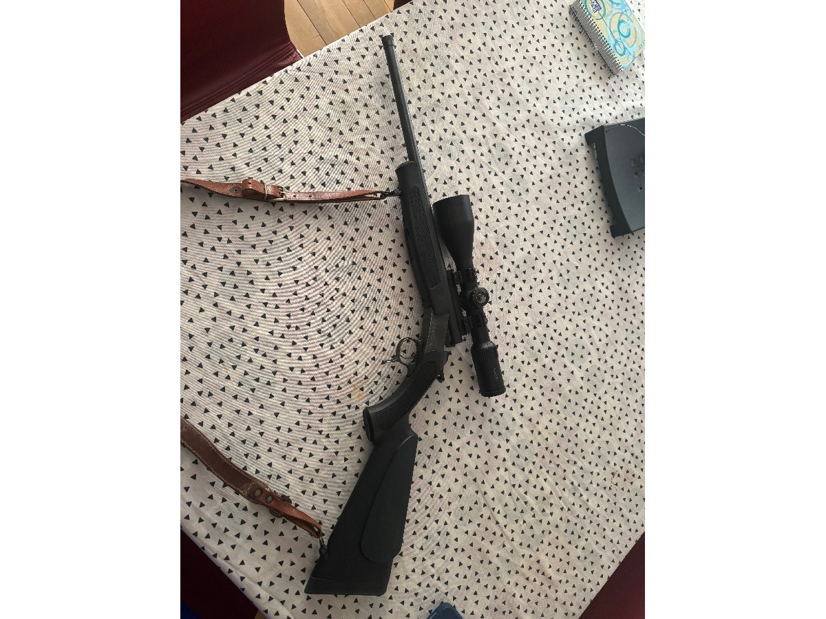 Monotiro 243, con rosca en la punta del cañón homologada. Está nuevo y se vende con una caja y media de balas punta plástico. Puesto a tiro con visor Avistar 2,5-10x50. También nuevo, compré el conjunto entero y no he gastado ni una caja de balas.