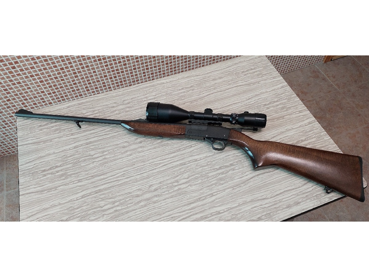 Rifle monotiro basculante, marca BRENO, calibre 222Remington, esta nuevo sin usar, porta una mira de 3-9×56 marca HAKKO colocada en unas monturas de la marca Breno de 30" con la característica que la cruz se ilumina con la simple luz de la luna o con muy poca luz debido a un tapón que se quita y se pone según las circunstancias, esto que digo es muy conveniente para las esperas de noche y con escasa luz, este calibre es muy preciso y tiene una gran velocidad, entre 900 y 1000 m/s, se utiliza para el tiro deportivo, no olvidemos que la marca Breno se caracterizaba por martillear los cañones en frío de ahí su gran fama de cañones muy precisos, también este calibre se utiliza para la caza, en el mercado hay cartuchera de diferentes pesos y características del proyectir.