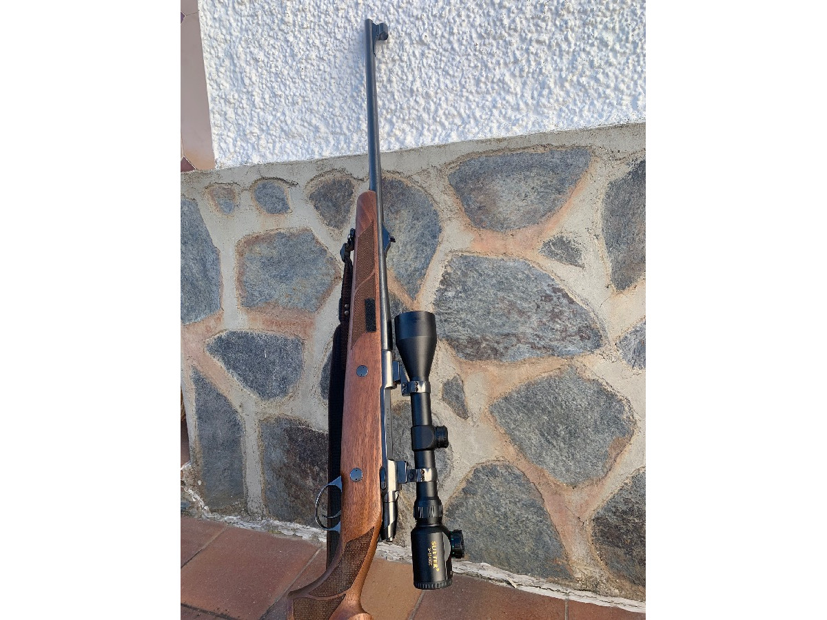 Rifle Sako Hunter 75 calibre 7mm. Bases y anillas Apel desmontables, y visor Sutter 3-10x50 con retícula iluminada. Buen estado.