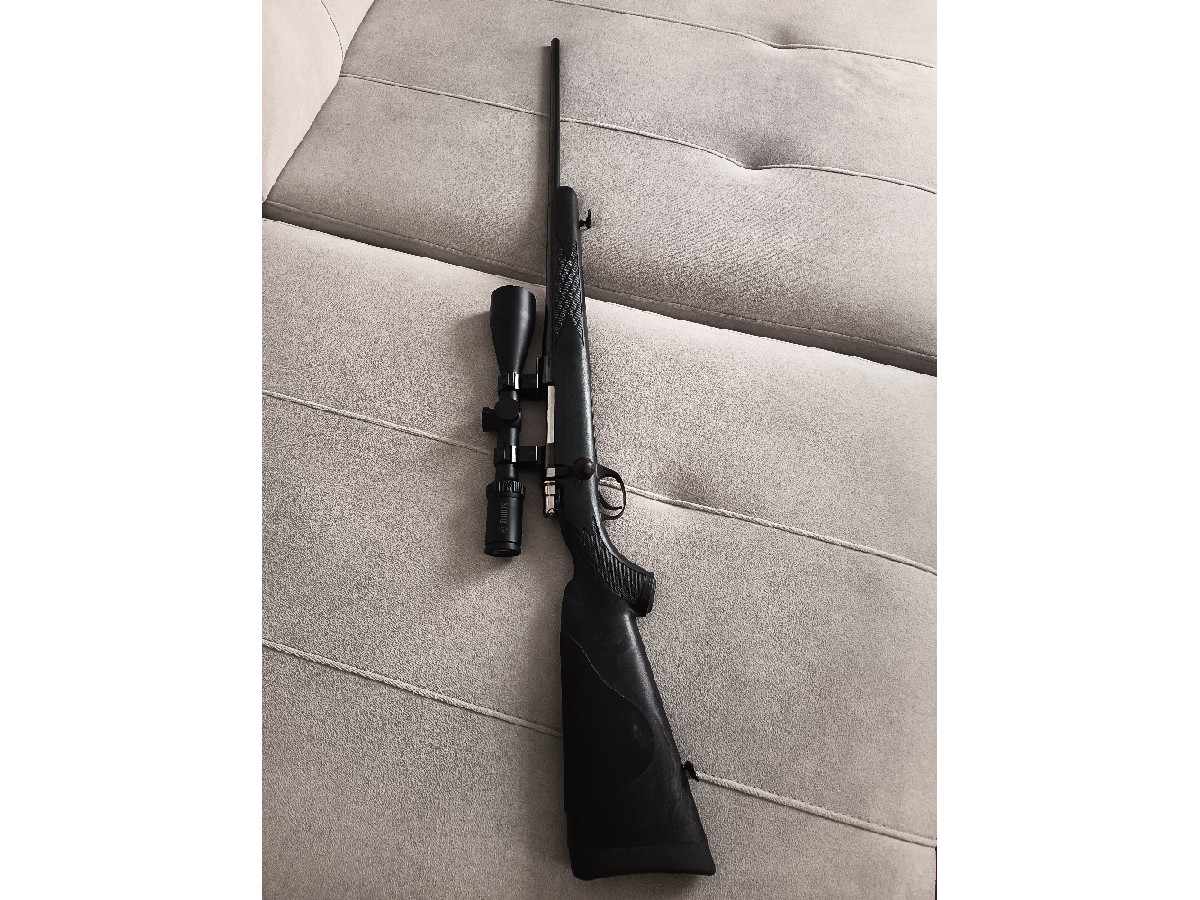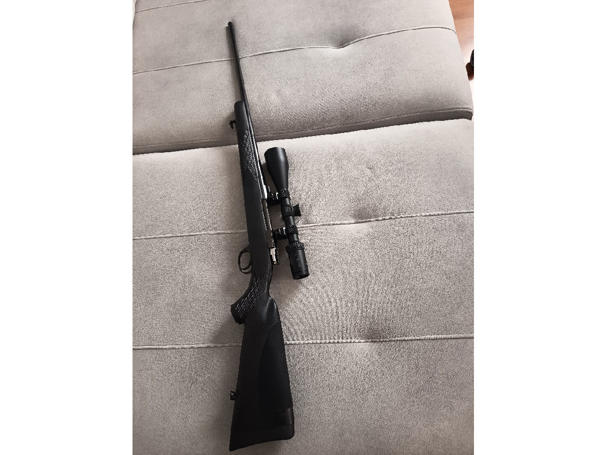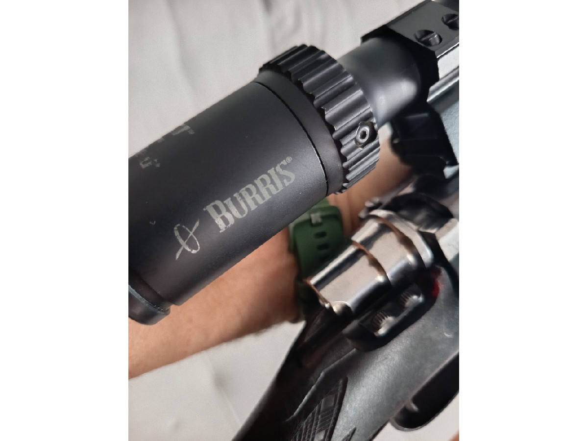 Rifle Santa Barbara 270 Win con culata sintética, bola de cerrojo roscada y visor Burris 3-9x50. Está en muy buen estado, balea perfecto.