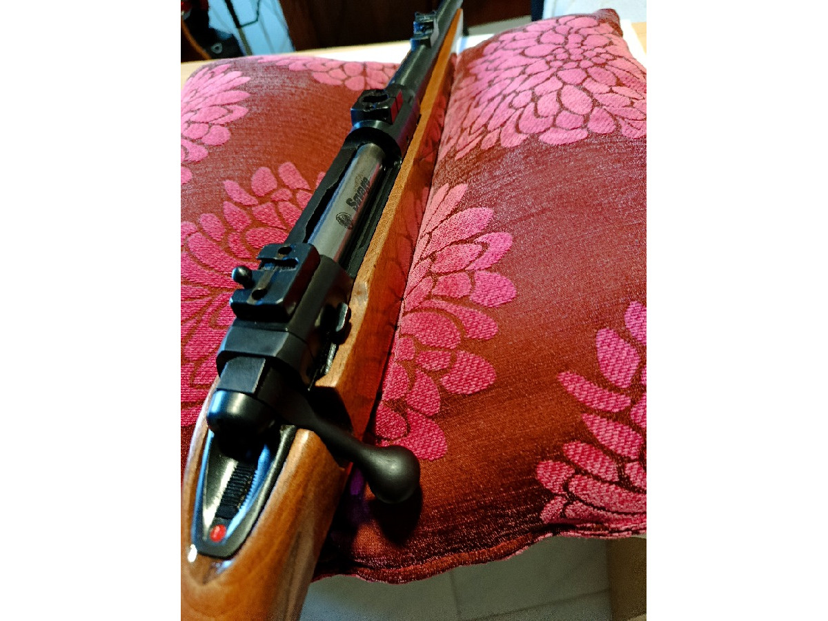 Rifle de cerrojo Savage en perfecto estado, fue usado para la caza en pocas ocasiones, no ha disparado ni una caja de munición. Alza y punto de mira. Pernos para anillas portafusil.
