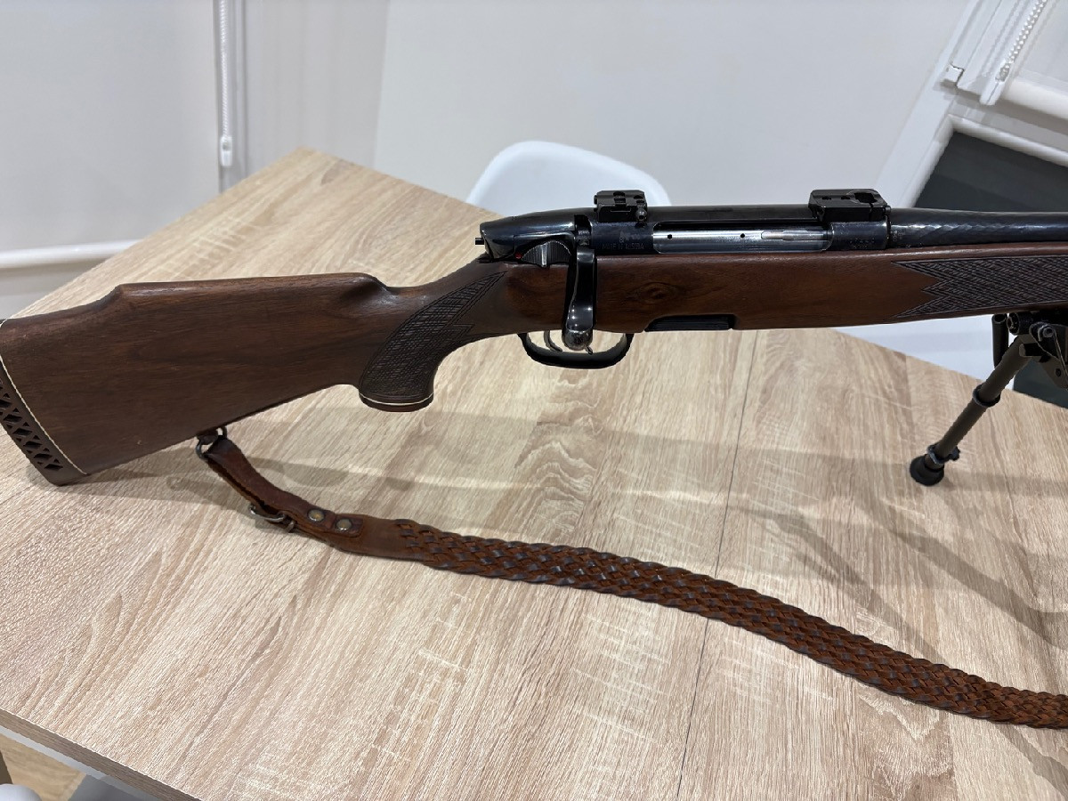 Rifle 7mm Remington Magnum con bases Apel, con pelo y boca de freno, pequeños roces por uso.