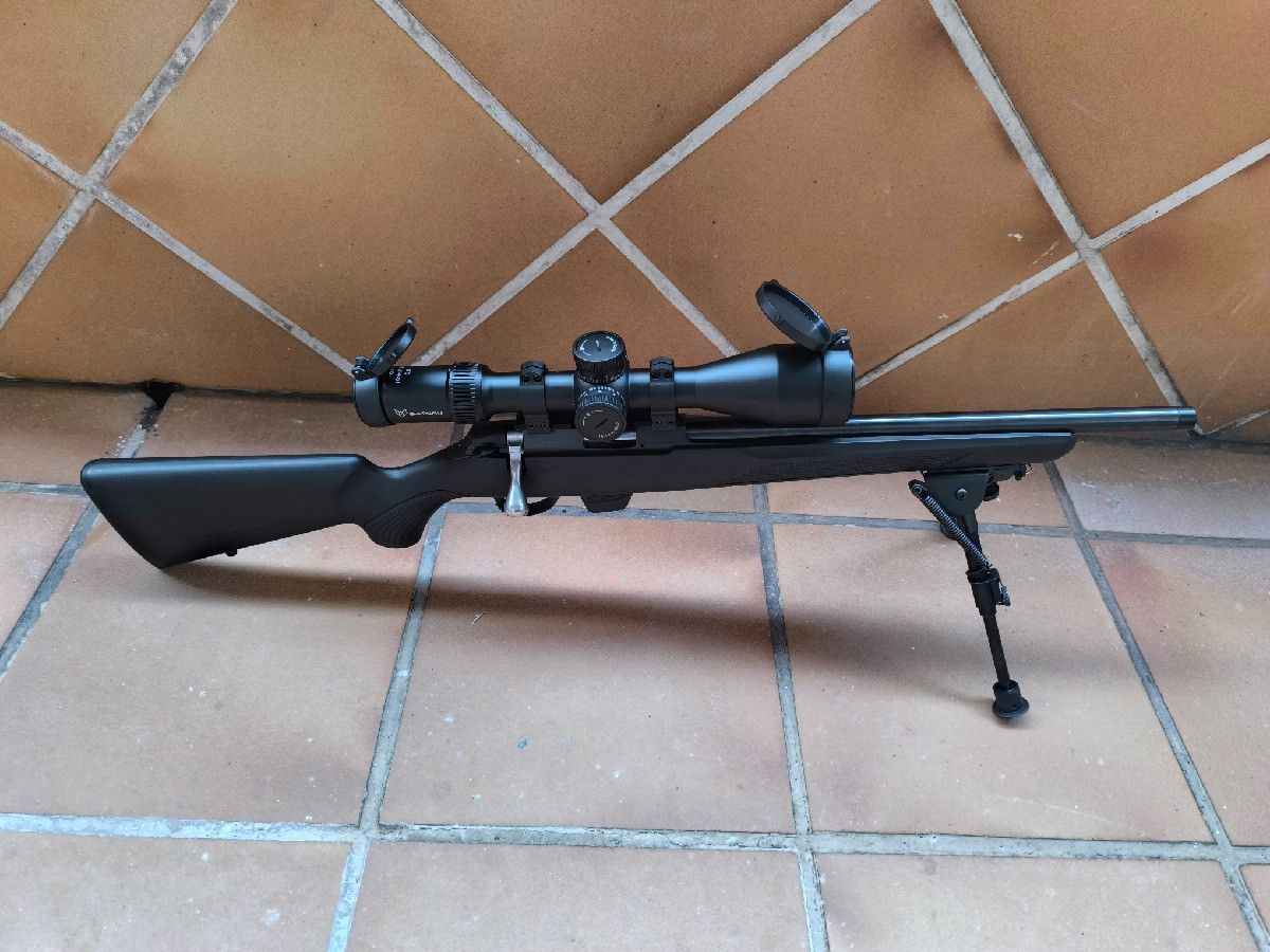 Vendo carabina calibre 22Lr, de la marca Tikka, modelo T1X, con 400 mm de cañón con rosca 1/2x20, y peso 2,4 kg. Dispone de un cargador original de 10 cartuchos. La carabina está guiada en E. Comprada en el Corte Inglés en febrero de 2025. Sólo ha tirado dos cajas de munición, está a estrenar. El conjunto entero, carabina, bípode, fundas y el visor, todo por 1300 €, con el envío incluido a cualquier Intervención de Armas de la Península. La carabina sola, y su bípode y las fundas, por 700 € más gastos de envío. No acepto cambios ni regateos.