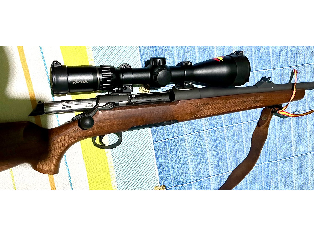 Magnífico rifle de cerrojo fabricado en Austria, un cerrojo rectilíneo a precio de cerrojo tradicional, en un calibre contundente para nuestra caza mayor 8x68S. Si te atreves con él, no te defraudará. No tendrás que volver a postear un animal. Monta un visor Burris Four X con un rango de aumentos de 2,5 a 10 x 50 RI, puesto a tiro.