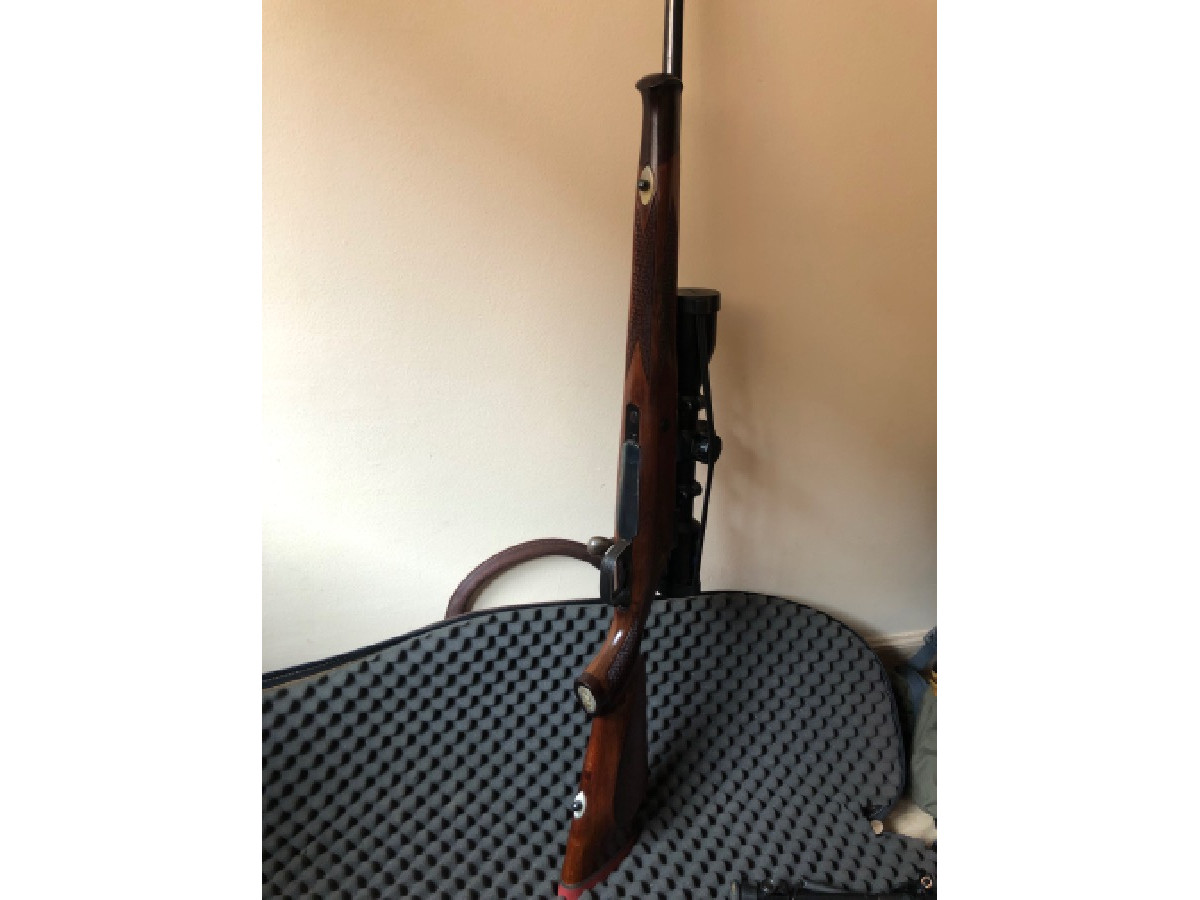 Rifle de cerrojo Santa Bárbara modelo 1000 calibre 270win, está en perfectas condiciones, pavonados y madera muy bien y poco uso.