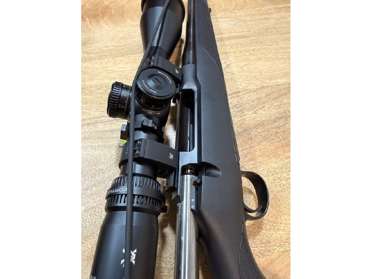 Se vende Sauer 100 XT, calibre 6.5 Creedmoor, visor Vortex Venom 5-25x56, torreta balística en milrad, corrección en altura y deriva, con todos los accesorios. Tengo la caja tanto del rifle como del visor. No ha pegado más de 20 tiros. Posibilidad de vender rifle solo.
