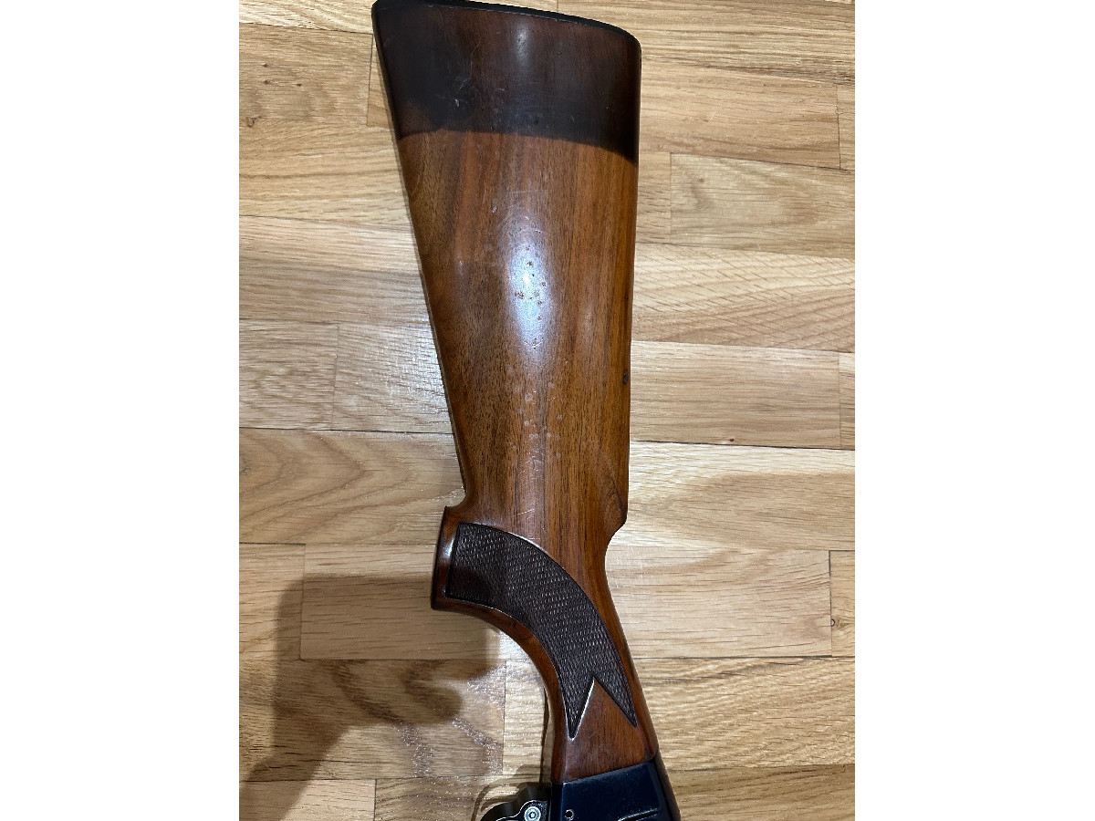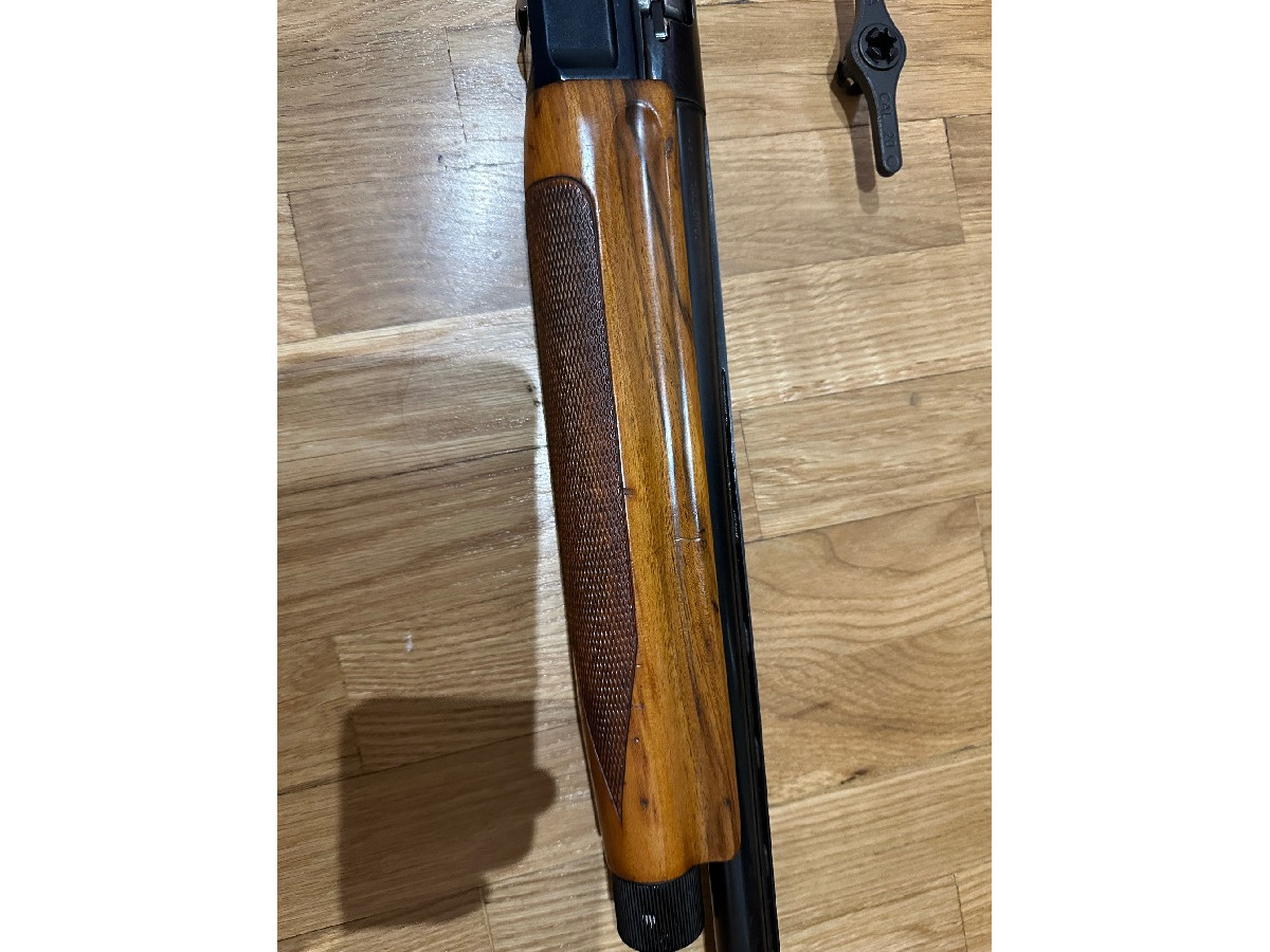 Escopeta repetidora Benelli 121 calibre 20. Tiene cañón de 66 cm de longitud y tres polichokes de 5, 3 y 2 estrellas. La escopeta está en buen estado, como se puede ver en las fotos. Las maderas también están muy bien. Incluye funda.