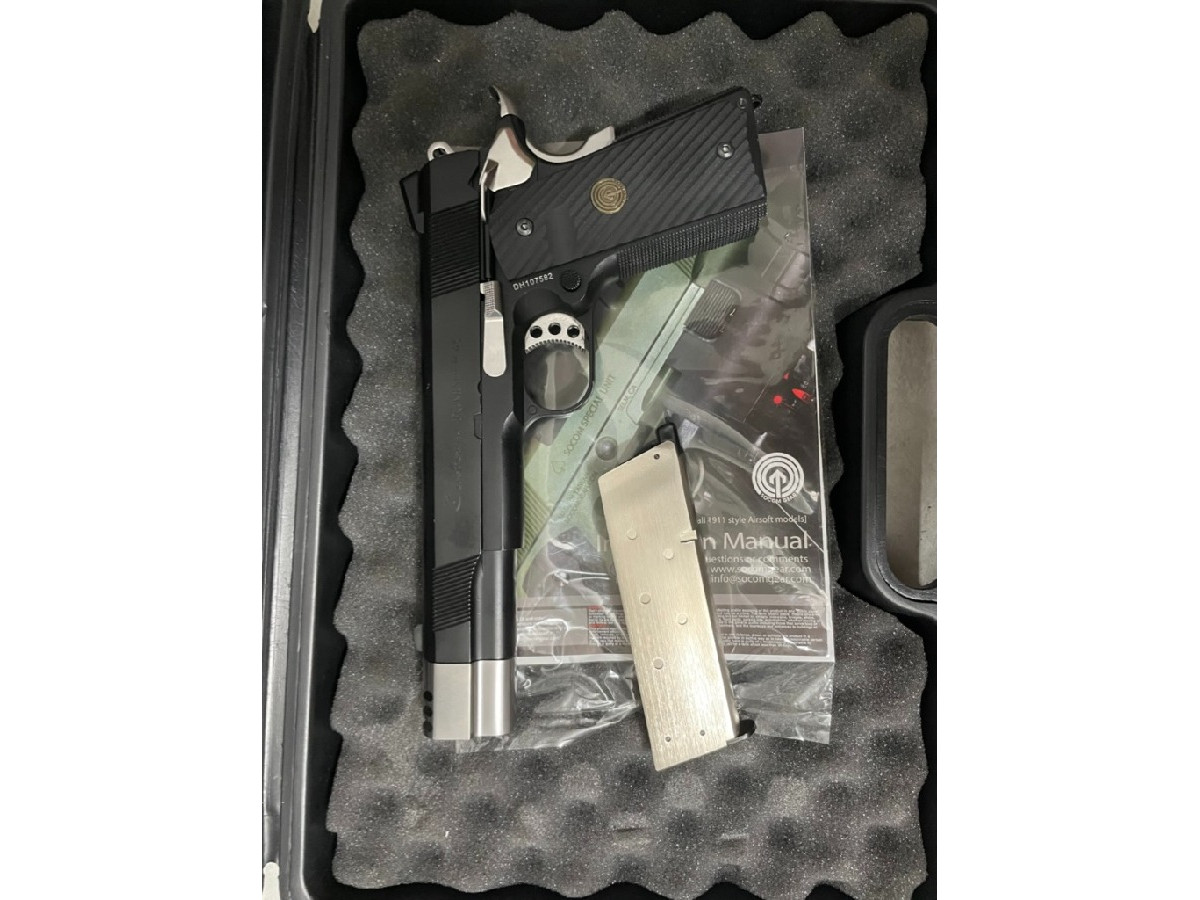 Color negro y plata. Propulsión con gas. Peso 800 g