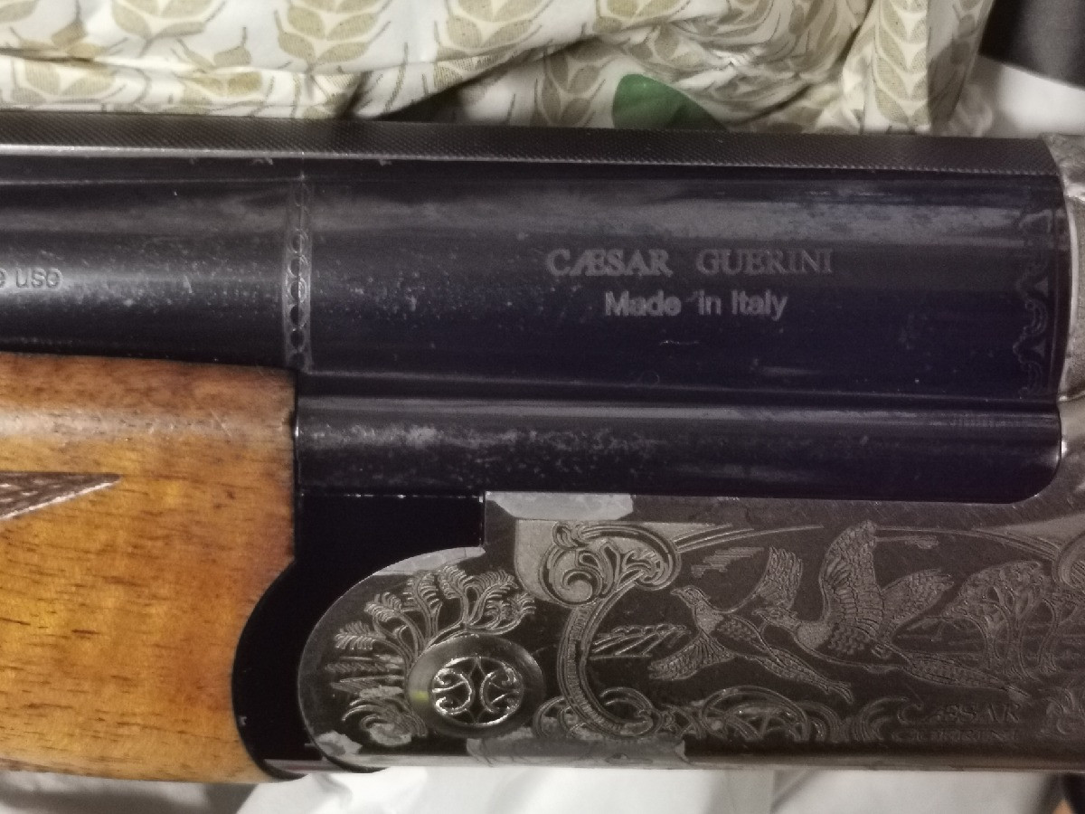 Caesar Guerini superpuesta, 61 cm cañón, 102 cm largo, 2620 gr, choques arriba, estriado el final abajo, calibre 12.
