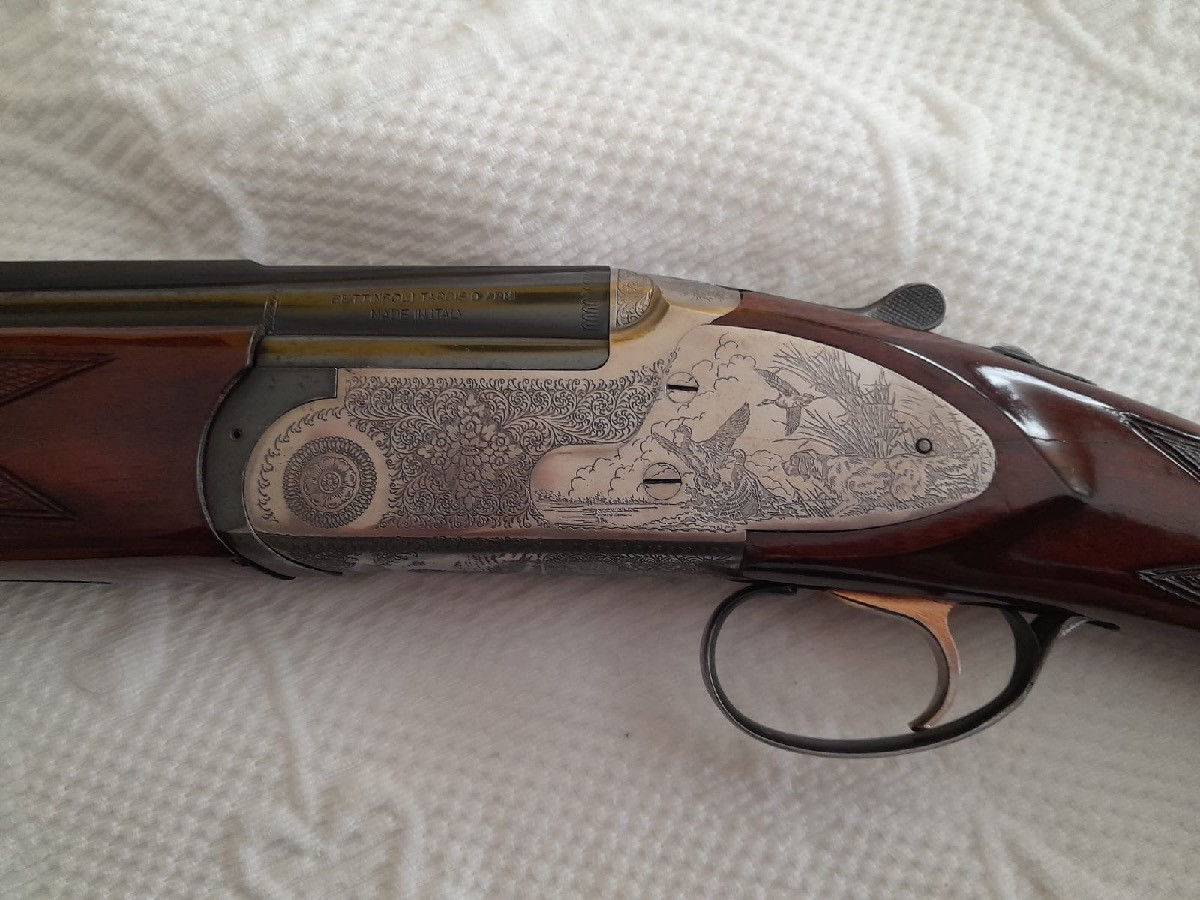Se vende escopeta Bettinsoli calibre 12, tipo sporting, expulsora, selector de tiro, pletinas enteras y garganta inglesa, de maderas impecables (mejor que en fotos). Más 6 choques, 2 de ellos 5 cm más largos. 650€ y los gastos de envío y transferencia a cargo del comprador. La escopeta es una pasada pero me cambio a la mayor.