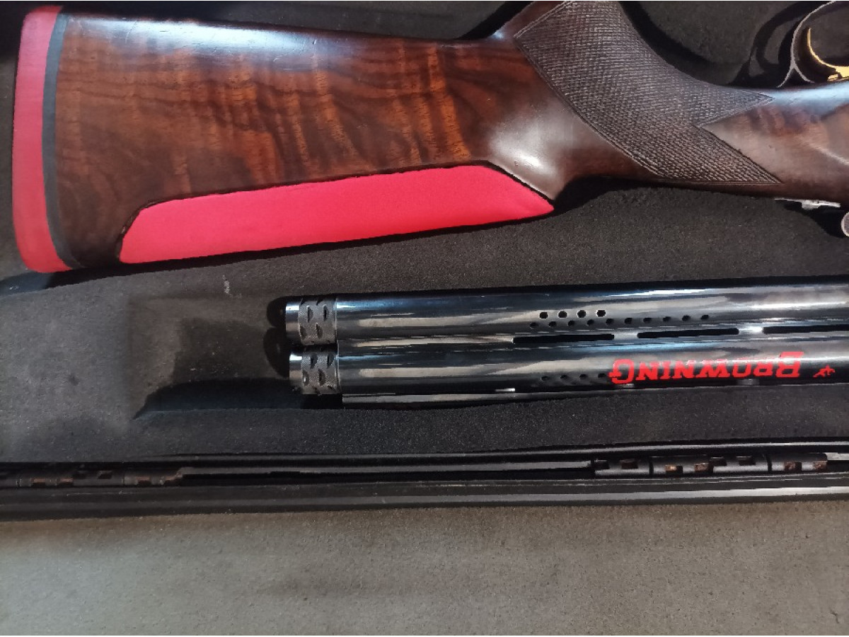 Escopeta superpuesta Browning especial edición sporter, culatín kiker. Chokes gemenis titaneo. Sube y baja. Maletín original + 6 chokes interiores.