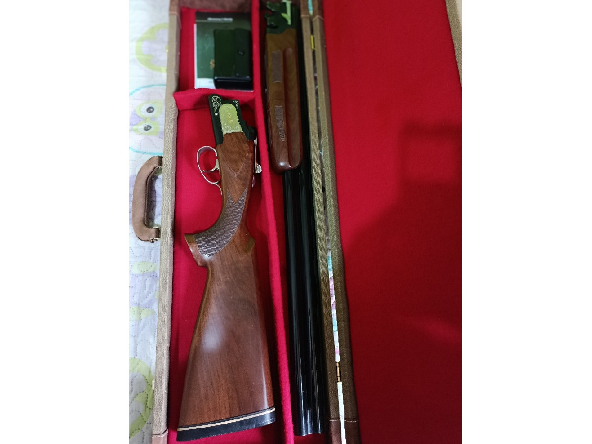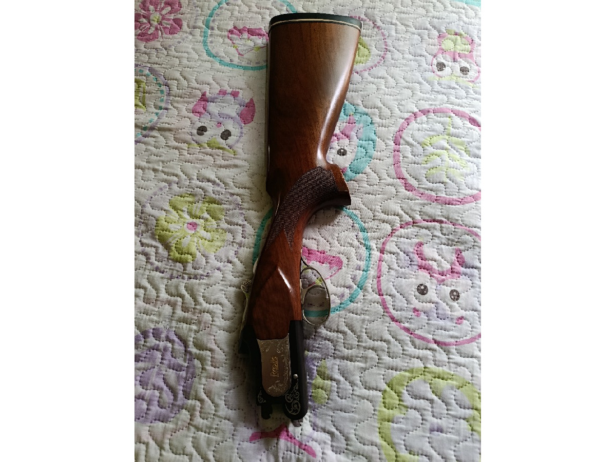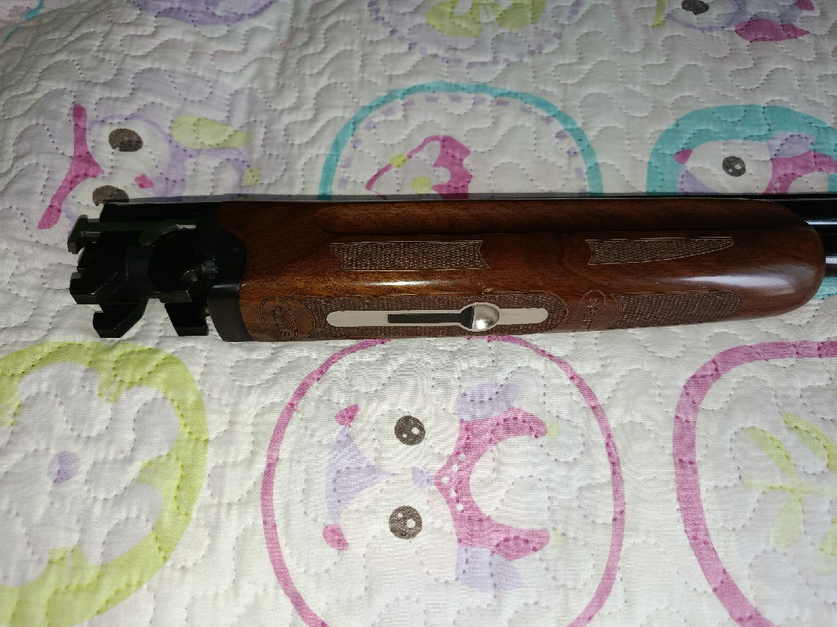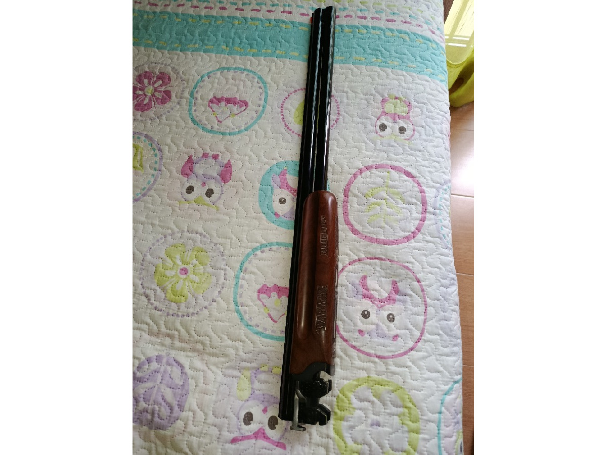 Escopeta yuxtapuesta Laurona Roolls especial plato, con selector de tiro, 5 polichok, cañones ventilados, banda ancha con punto rojo. Maderas de nogal de grado 3 con bonito veteado. En perfecto estado. No ha tirado ni un cajón de cartuchos.
