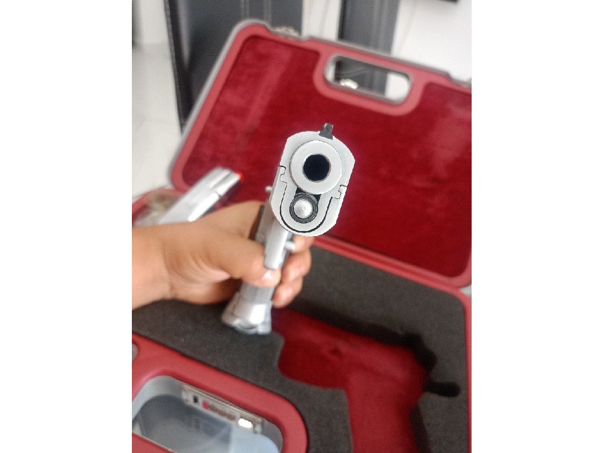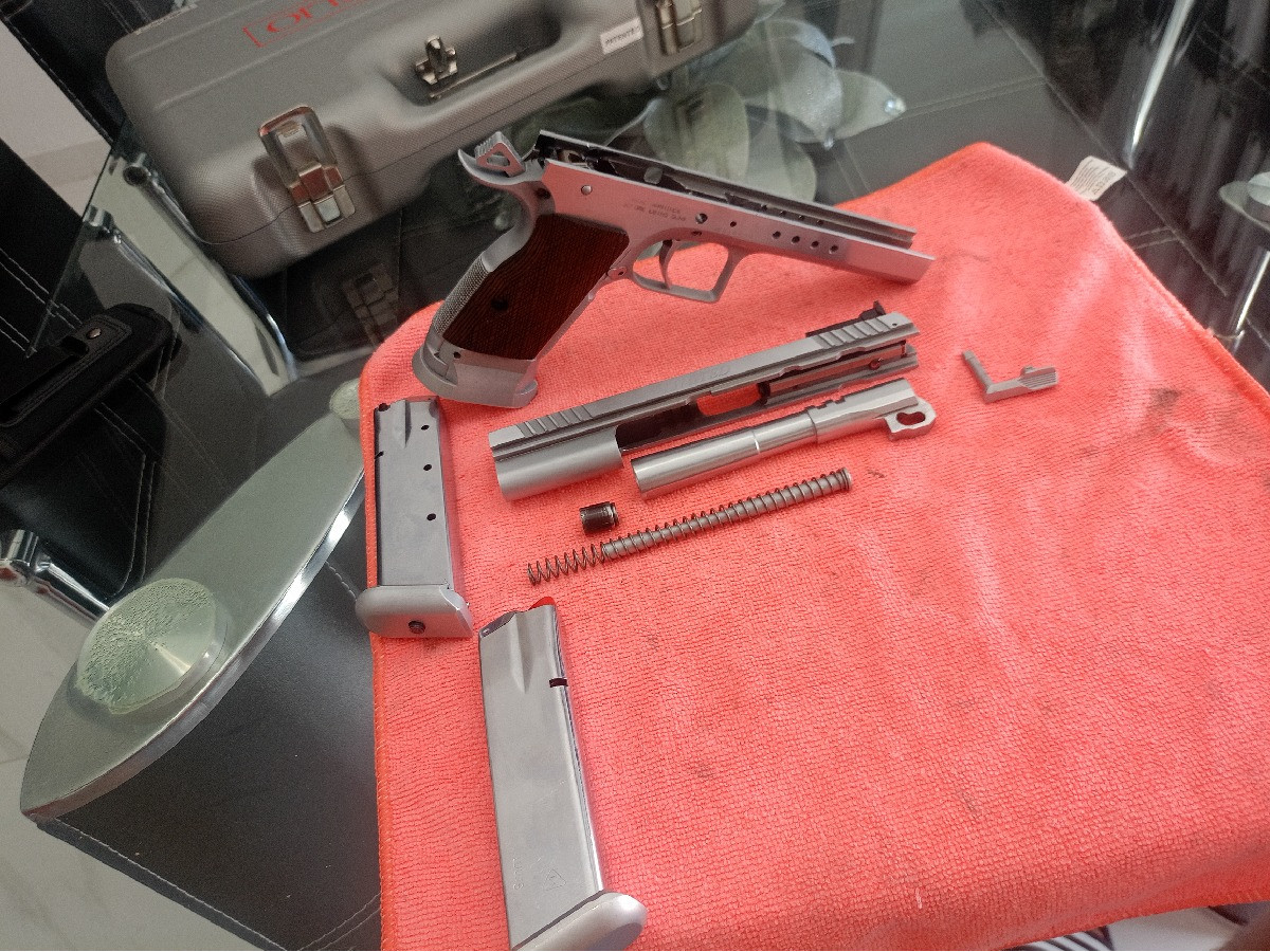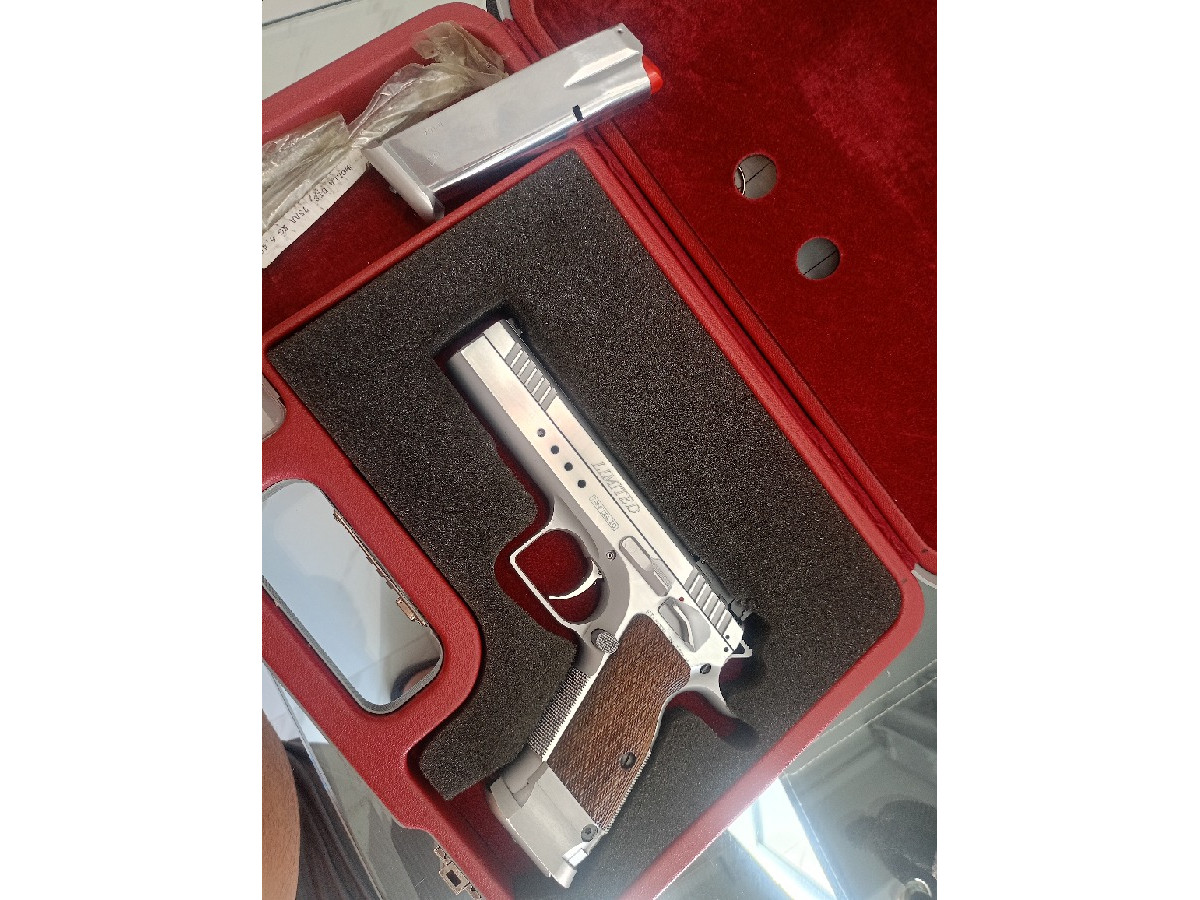 Maletín original con combinación, 2 muelles de fábrica de distintas durezas. El gatillo está afinado para precisión, es una delicia. Un gran arma para hacer puntos, bien sea en precisión o IPSC, a toda prueba.