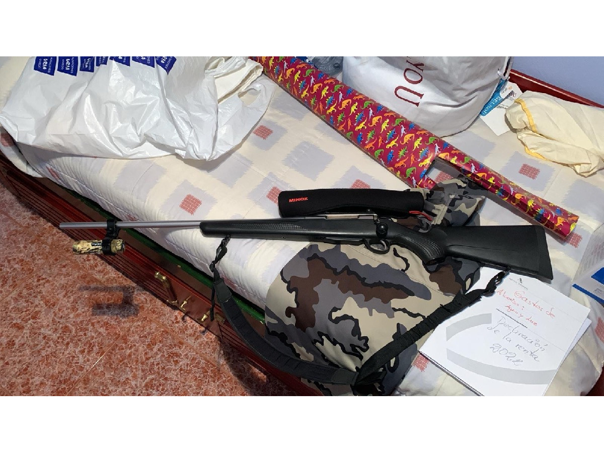 Se vende conjunto completo de rifle Tikka T3x (zurdo) en calibre 300 Winchester Magnum y visor Minox ZE5.2i 2-10x50 con retícula iluminada. Equipo preciso, ligero y muy cuidado.