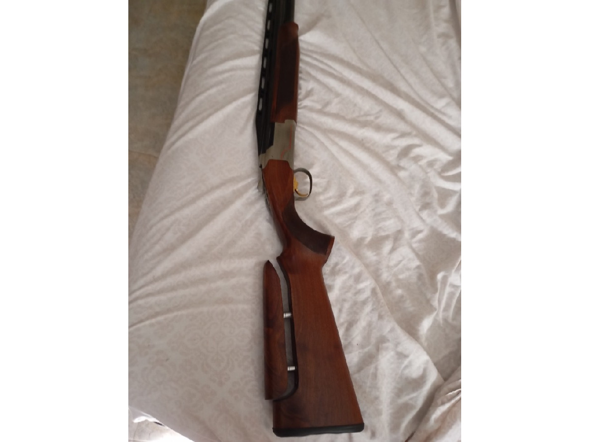 Superpuesta Browning B725 Sporter con cañón de 76 Invector DS, culata regulable en muy buen estado. Muy bien de maderas y pavonado con banda alta desmontable. Pocos tiros. Muy ajustada. Cuesta cerrarla.