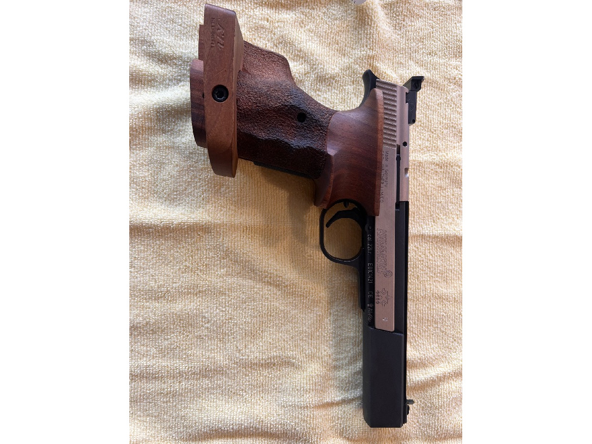 La pistola Hammerli X-Esse Sport SF de calibre .22lr es para tiro deportivo con una moderna e innovadora empuñadura anatómica de madera contrachapada y gatillo ajustable a dos tiempos. Características: Calibre 22 lr, Medidas 245x145x50 mm, Longitud cañón 150 mm, Longitud mira 215 mm, Peso 950 g, Cargador 10 disparos, Armazón de acero, Corredera con revestimiento Stinox, Empuñadura de madera contrachapada ajustable, Gatillo ajustable a dos tiempos, Mira trasera ajustable por clic, mira delantera giratoria, Cargador de 10 cartuchos (2 cargadores incluidos), Seguro manual.