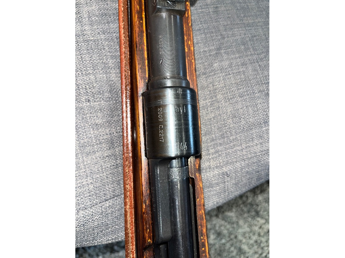 Vendo Mauser K 98 Kar en perfecto estado sin golpes, rayones ni falta de pavón. Se entrega con dos juegos de maderas en perfecto estado y originales, números de serie coincidentes en cañón, cerrojo y maneta de seguro, únicamente marcajes alemanes. Fabricado en 1944 en la Mauser AG Oberndorf, se entrega con correa original (post guerra), 4 peines originales, certificado de autenticidad expedido por la Mauser. El arma se encuentra en Cantabria.