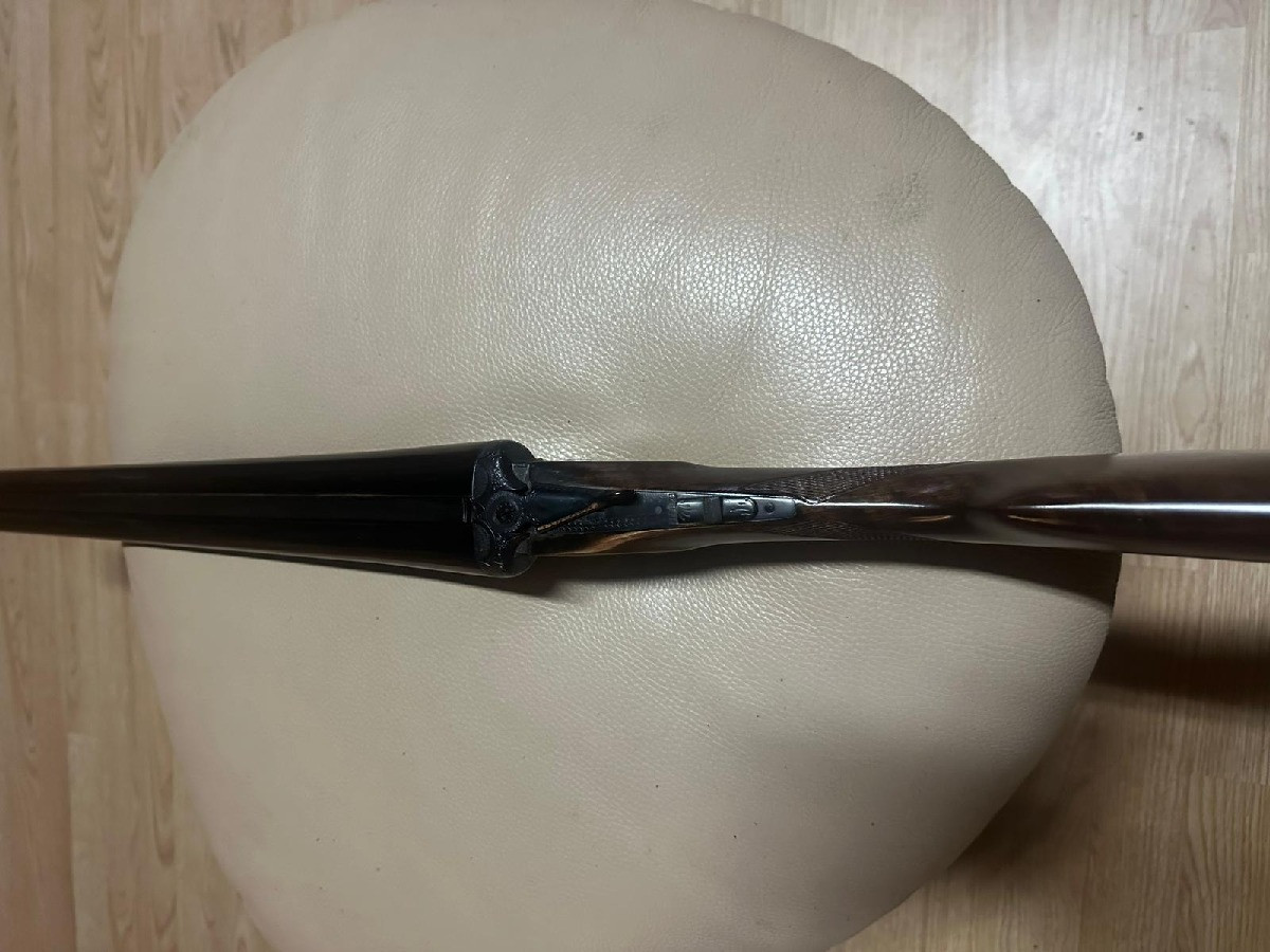Escopeta paralela, marca JJ Sarrasqueta, con un solo disparador, expulsora, salida de gases y ajuste de pletinas. Precio 400€.