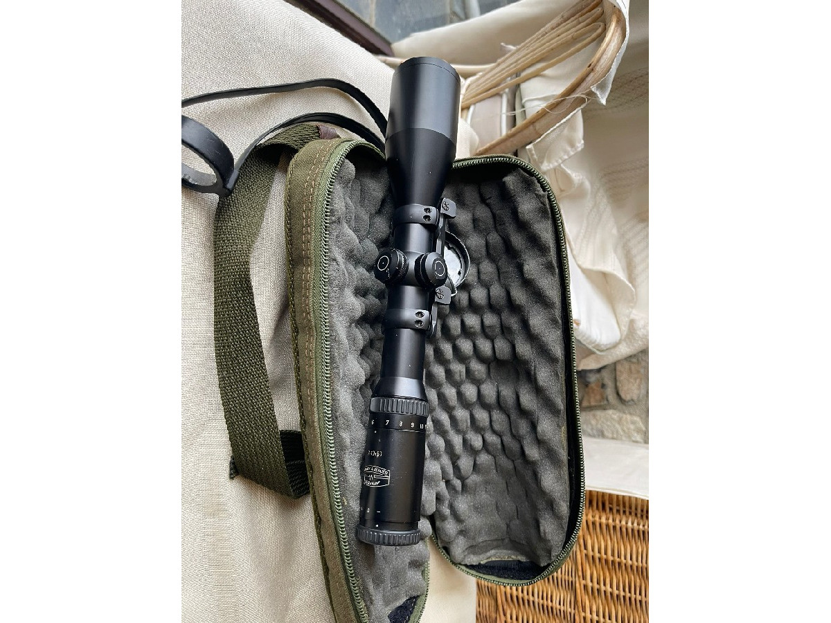 Visor en perfectas condiciones, solo algún rallazo en la superficie. Incluye funda y montura para Blaser.