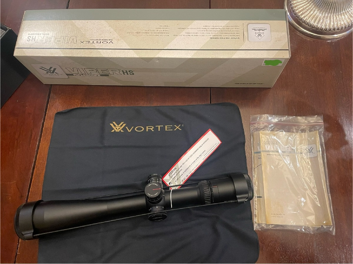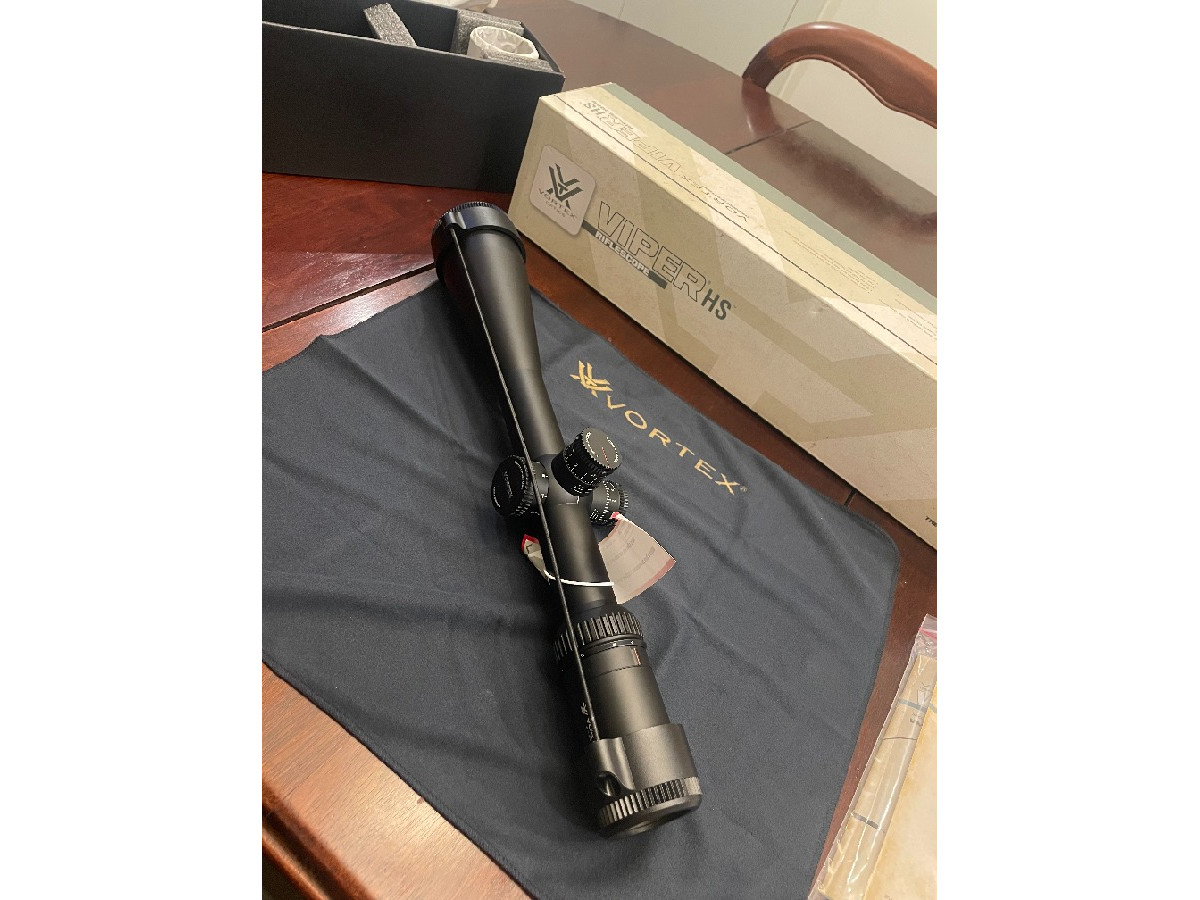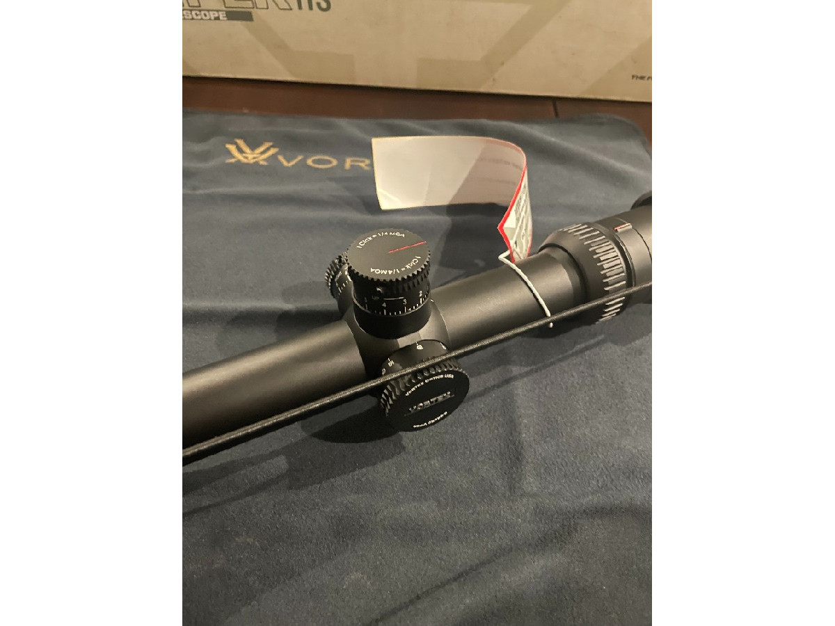 Visor Vortex Viper HS LR 6-24x50 FFP, NUEVO, sin uso. Comprado pero nunca montado ni estrenado. Ideal para tiro de larga distancia gracias a su retícula XLR (MOA) en primer plano focal, con torreta táctica de elevación y ajuste preciso de paralaje. Tubo de 30 mm, lentes HD multicapa, resistente a golpes y condiciones extremas. Incluye tapas protectoras y parasol. Calidad Vortex garantizada