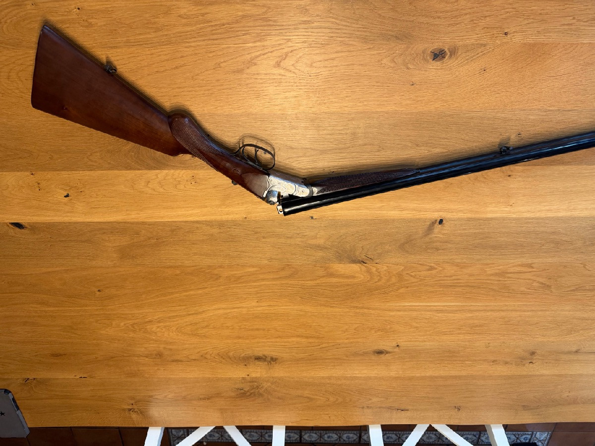 Escopeta superpuesta calibre 12/70 de cañón. Antigua en muy buen estado. Mando fotos para que se vea las estrellas de cada cañón porque no termino de aclararme.