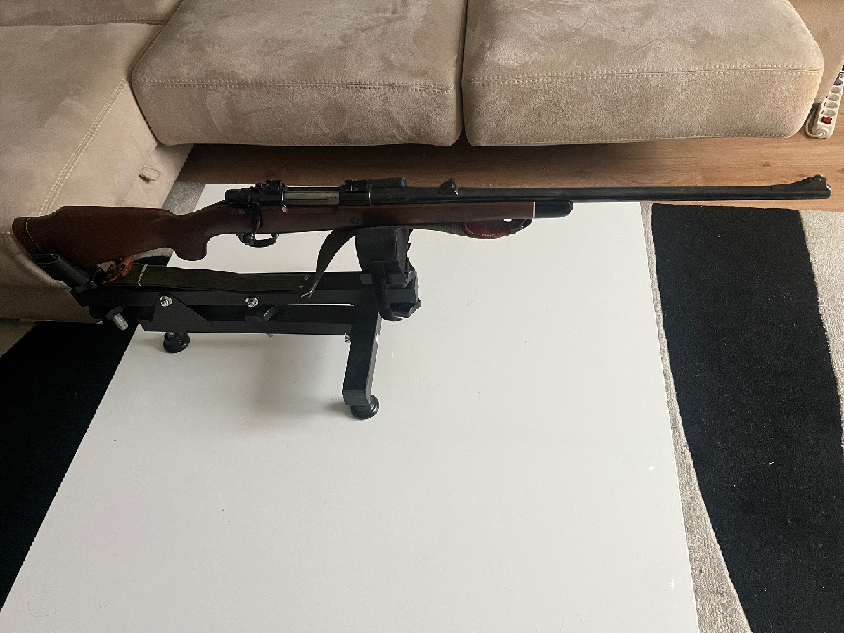 Rifle de cerrojo Zastava, calibre 375 H&H Magnum, excelente estado, alza abatible, bases de rail para visor, incluye portafusil.