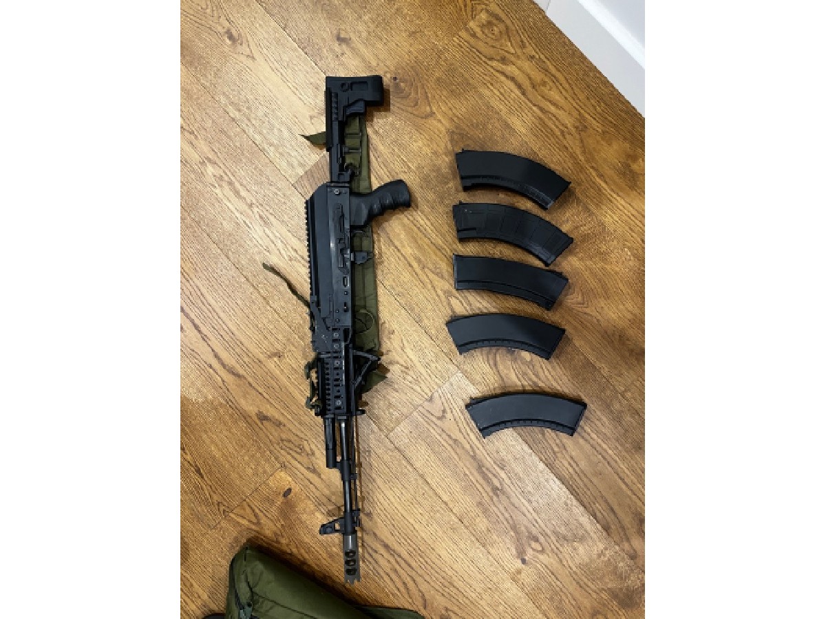 - Incluye: 5 cargadores, silenciador PBS-1, batería de 11,1 v 1350 mAh 25-50C, caja original y partes externas originales sustituidas por las anteriormente mencionadas.