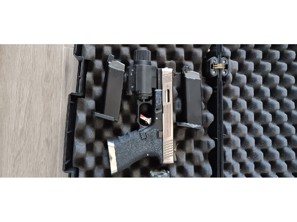 - Glock 19 (necesita arreglo, falta de potencia) + 2 cargadores de gas+ linterna+laser+funda rígida.