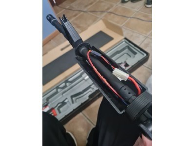 M4 Electric Blowback ICS. Esta totalmente de serie. Habré jugado con ella unas 10 o 15 partidas. Tiene Gearbox modular lo que es muy cómodo para engrasar o cambiar muelle. La réplica va perfecta y con muy buena precisión. La Bateria va dentro del guardamanos.