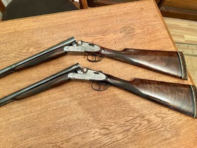 Pareja de escopetas paralelas del calibre 20, marca Aya número 2. En muy buen estado , muy poco uso. Se entrega con fundas de cuero.